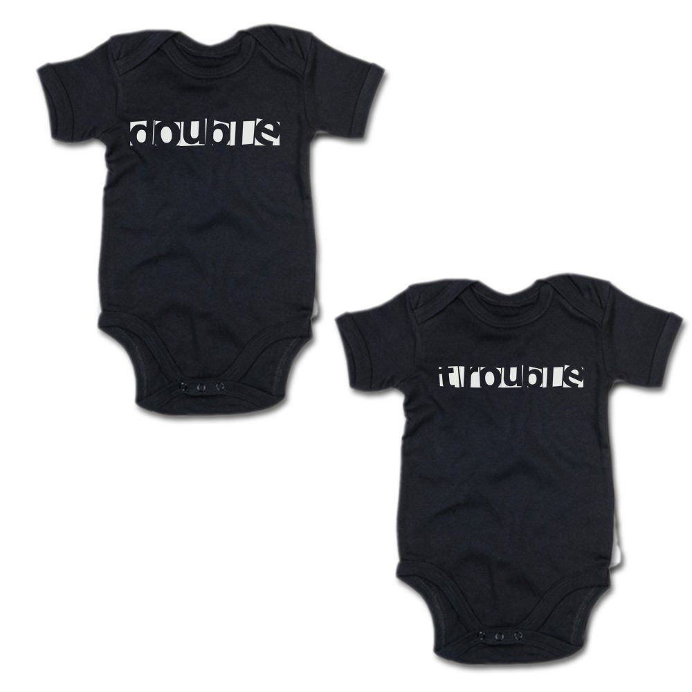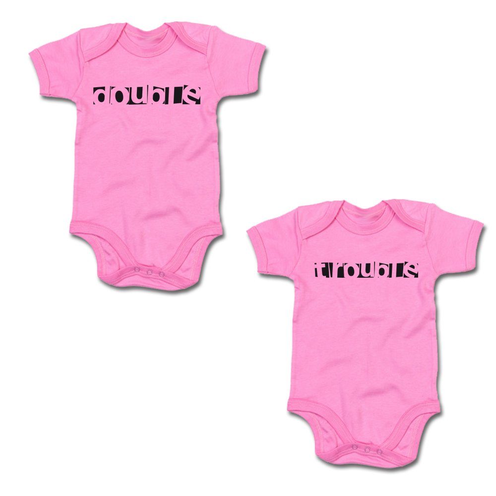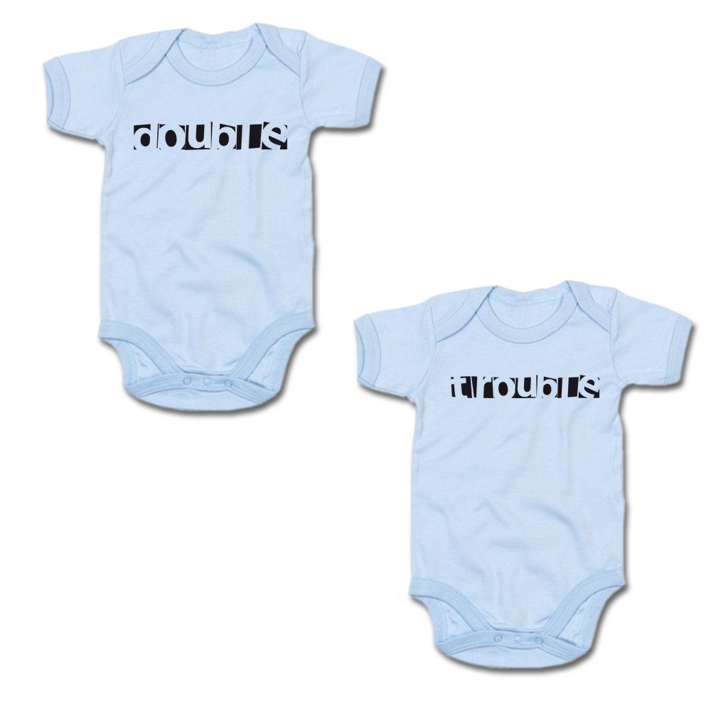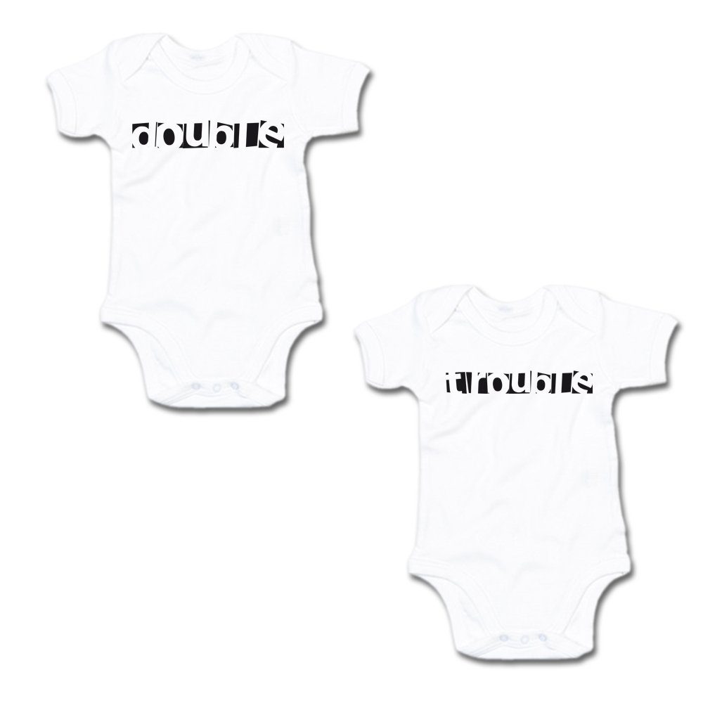 G-graphics Kurzarmbody Double & Trouble (Zwillingsset / Twinset, 2-tlg., Baby-Body-Set) für Zwillinge / Twins mit Sprüchen
