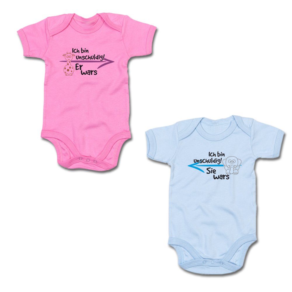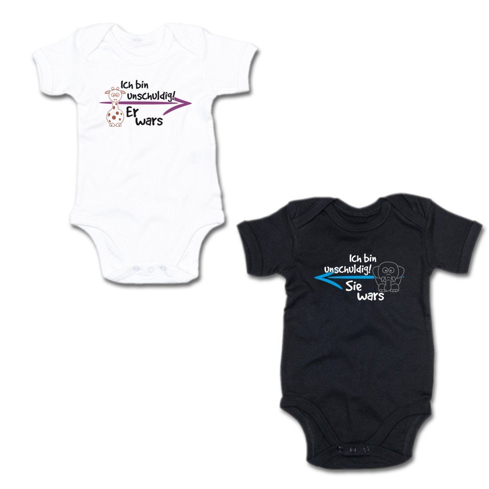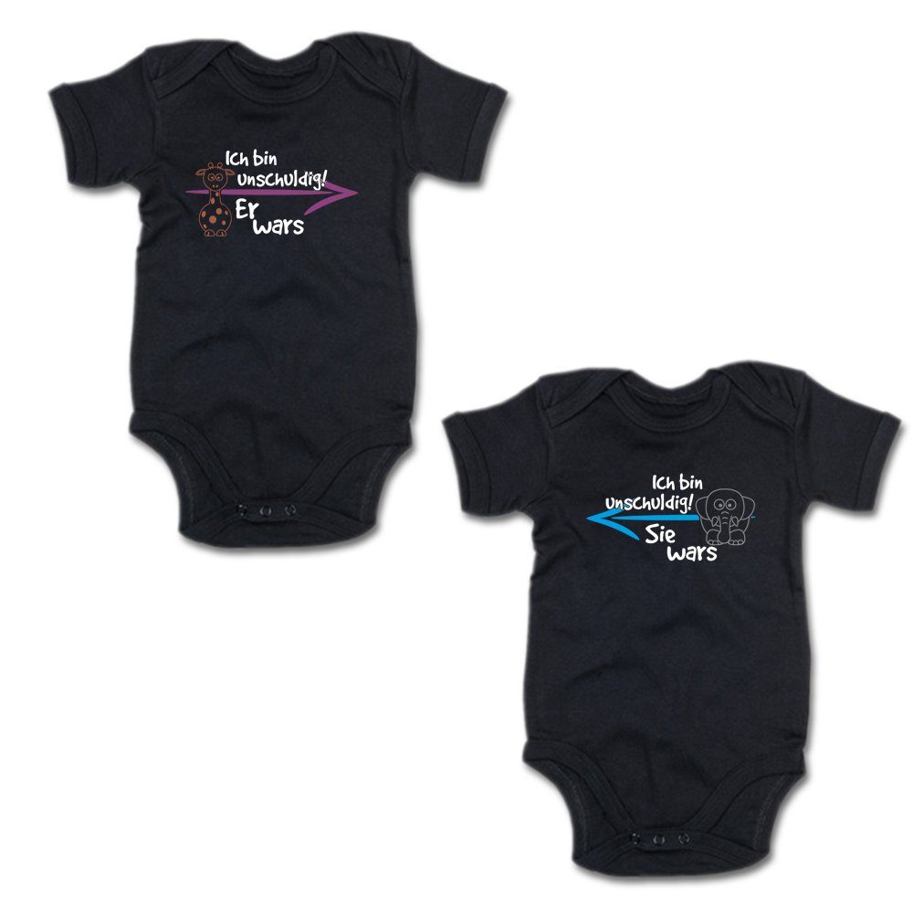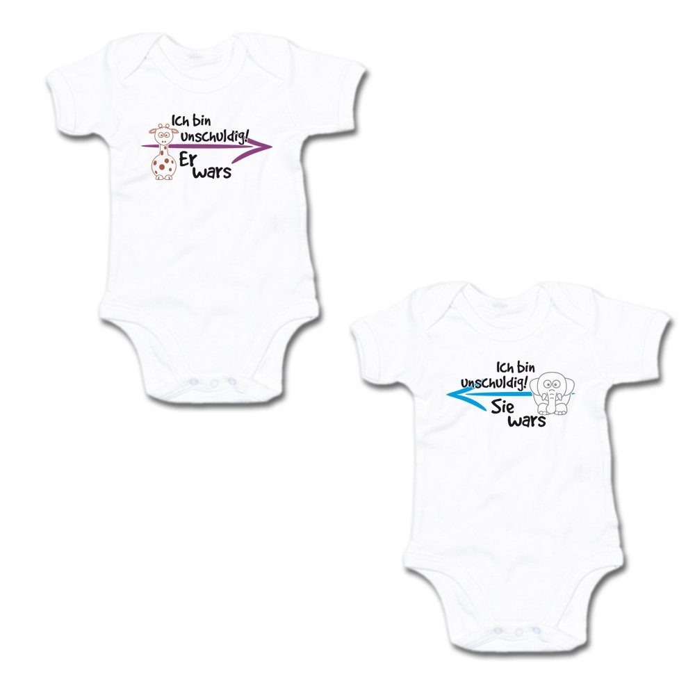 G-graphics Kurzarmbody Ich bin unschuldig! – Er wars & Sie wars (Zwillingsset / Twinset, 2-tlg., Baby-Body-Set) für Zwillinge / Twins mit Sprüchen