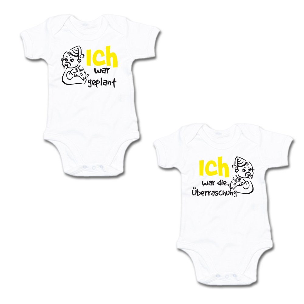 G-graphics Kurzarmbody Ich war geplant! & Ich war die Überraschung! (Zwillingsset / Twinset, 2-tlg., Baby-Body-Set) für Zwillinge / Twins mit Sprüchen