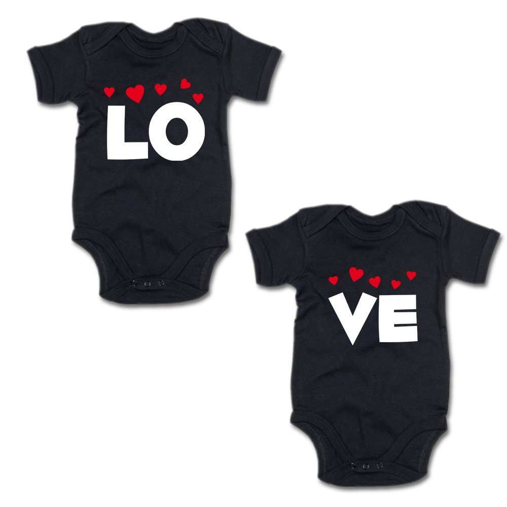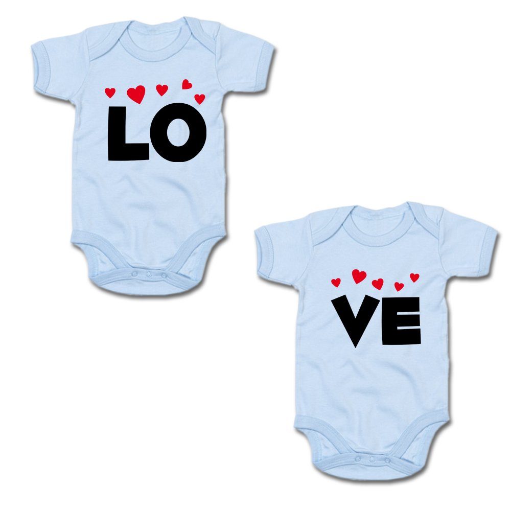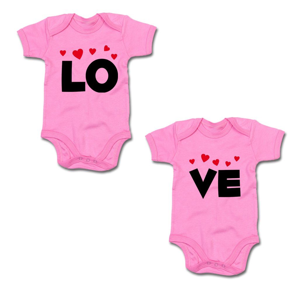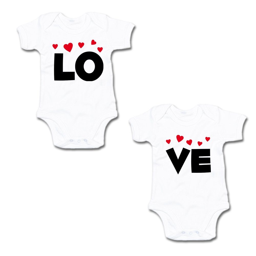 G-graphics Kurzarmbody LO & VE (Zwillingsset / Twinset, 2-tlg., Baby-Body-Set) für Zwillinge / Twins mit Sprüchen