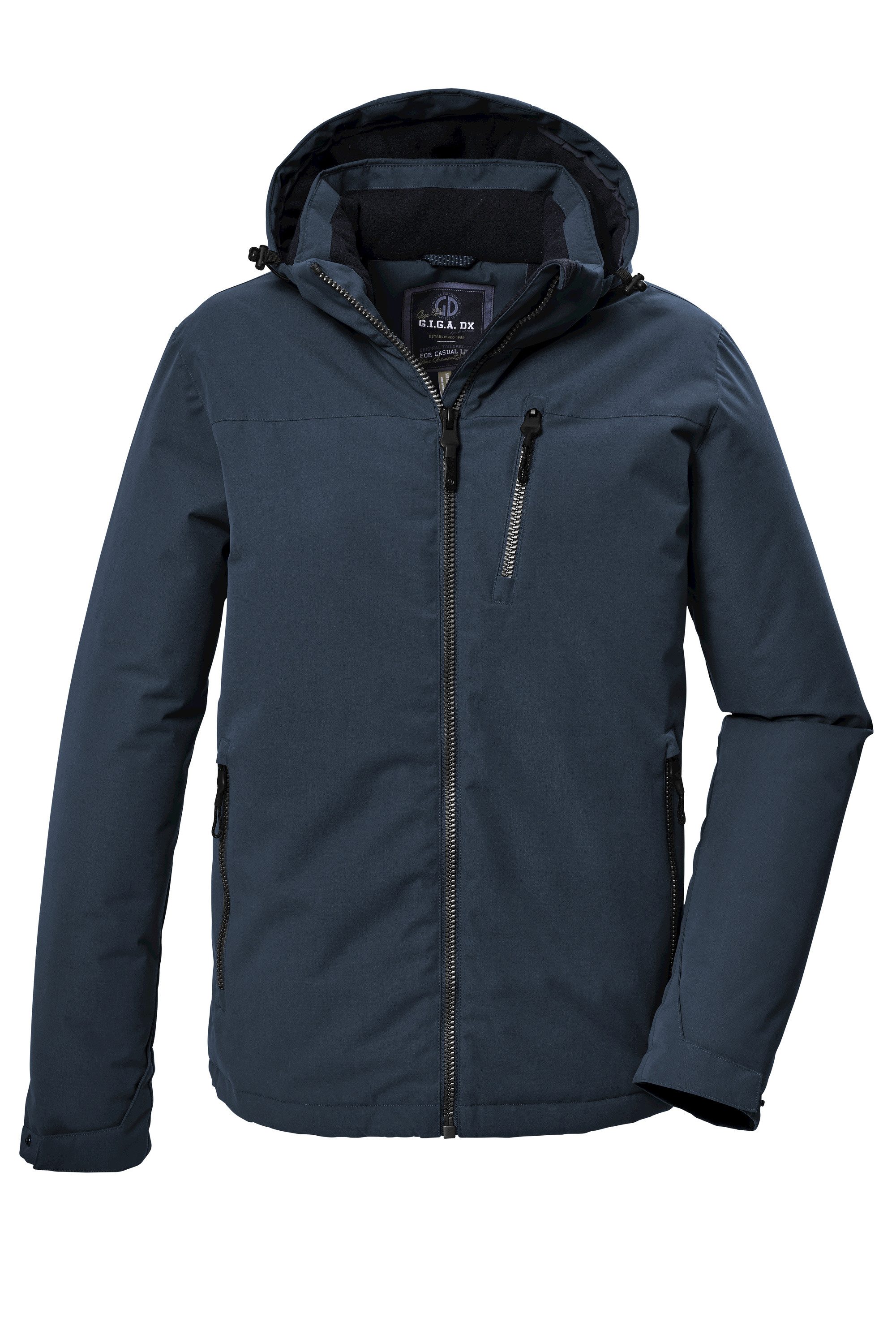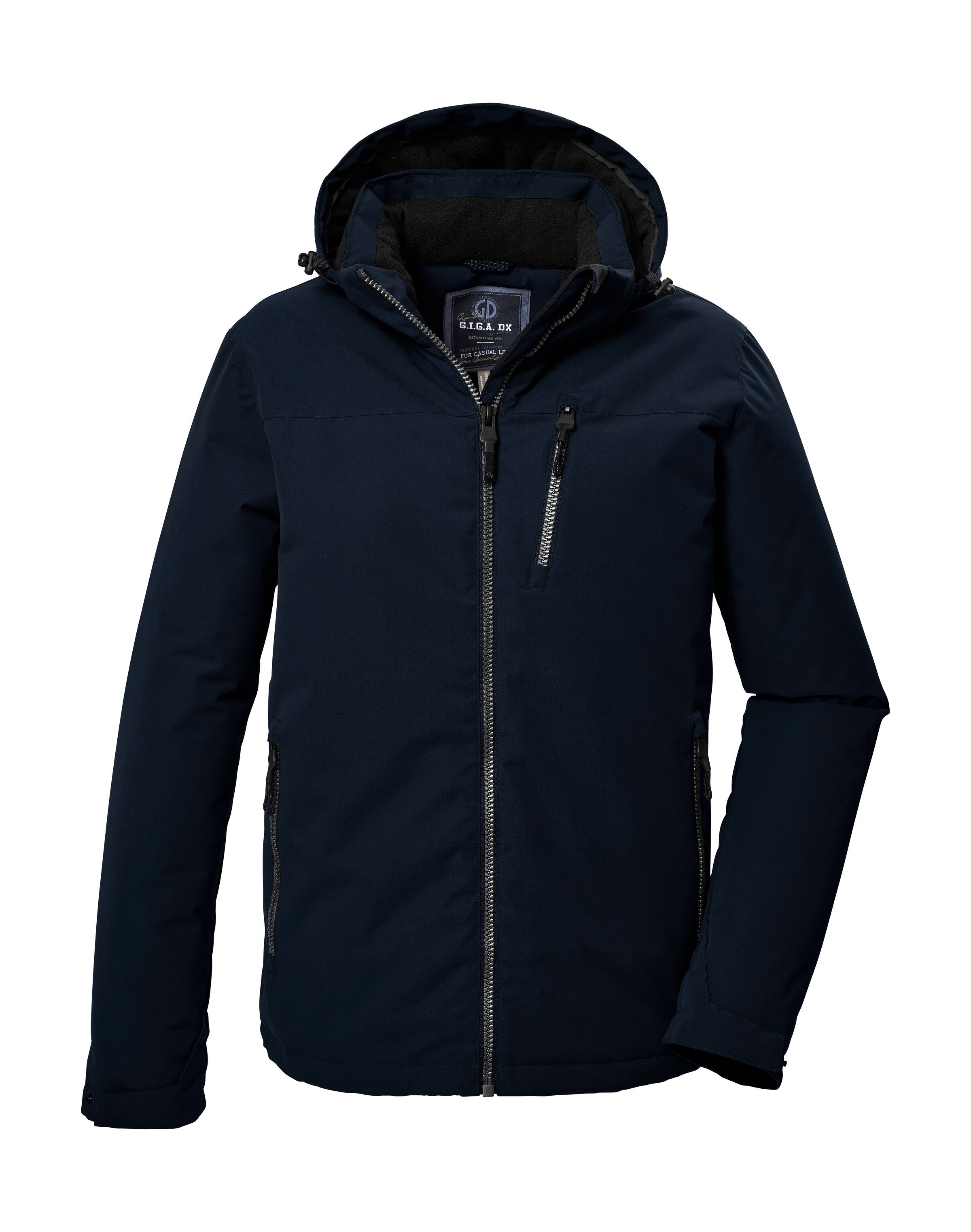 Die G.I.G.A. DX Herren Winterjacke besticht durch ihre Citytauglichkeit und Funktionalität. Die Jacke hat verschweißte Nähte und ist mit einer Wassersäule von 8.000 mm wasserfest (Achtung: Ab und zu sollte die Jacke neu imprägniert werden) und gleichzeitig atmungsaktiv. Weiches Fleece im Rückenbereich und in der Kapuze hält besonders warm. Die Weite von Saum und Ärmelbündchen lässt sich verstellen. Die Kapuze ist regulierbar und kann bei Bedarf abgezippt werden. Der Reißverschluss ist mit einem praktischen Kinnschutz ausgestattet, der ein Einklemmen der Hut verhindert. Diverse Taschen bieten ausreichend Stauraum für Handy, Schlüssel und Co. Diese Jacke wurde mit fluorfreien Mitteln imprägniert.