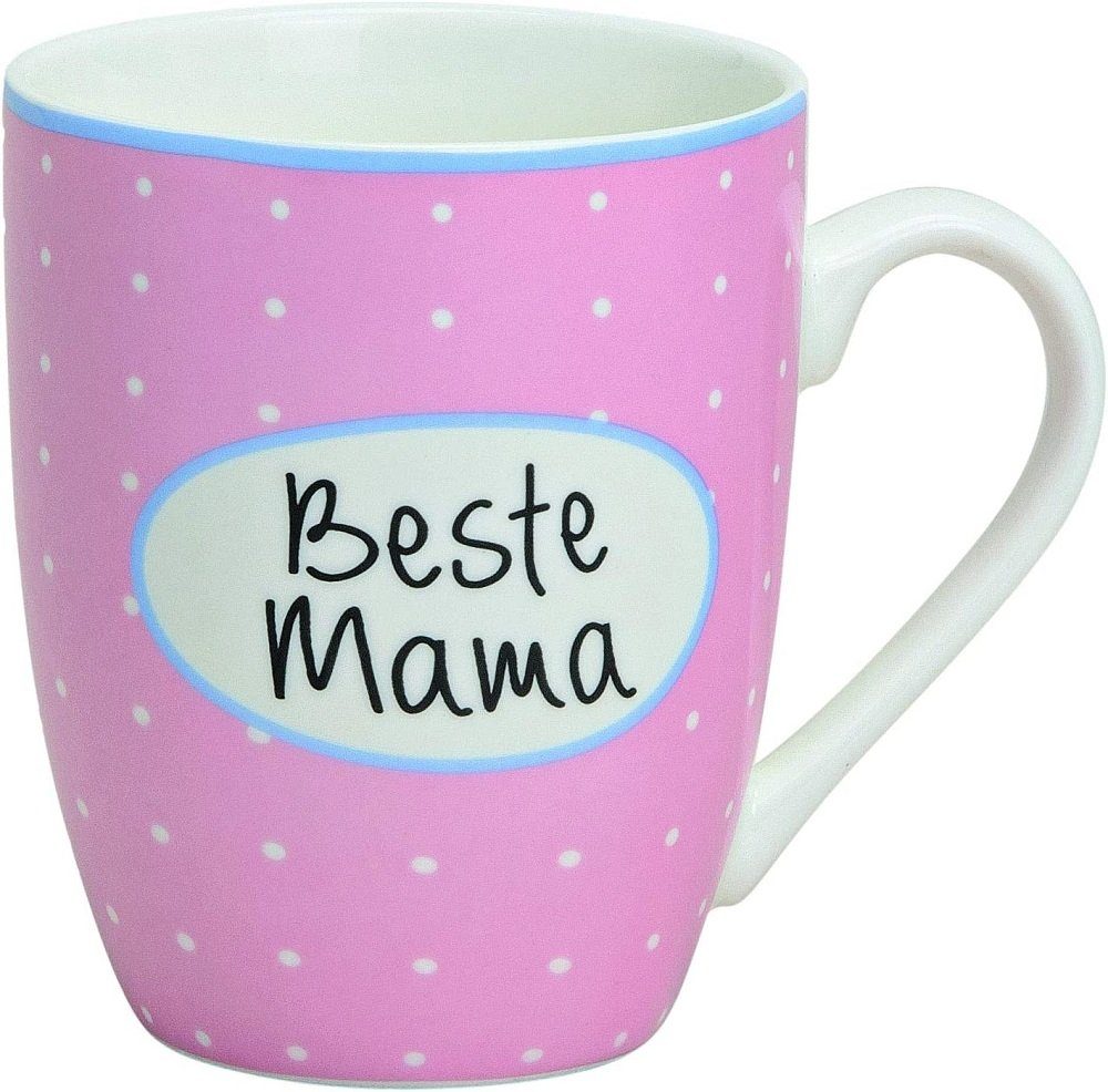 Schöne Tasse mit der Aufschrift: Beste Mama Das Motiv ist beidseitig angebracht. Die Tasse ist aus Keramik gefertigt.