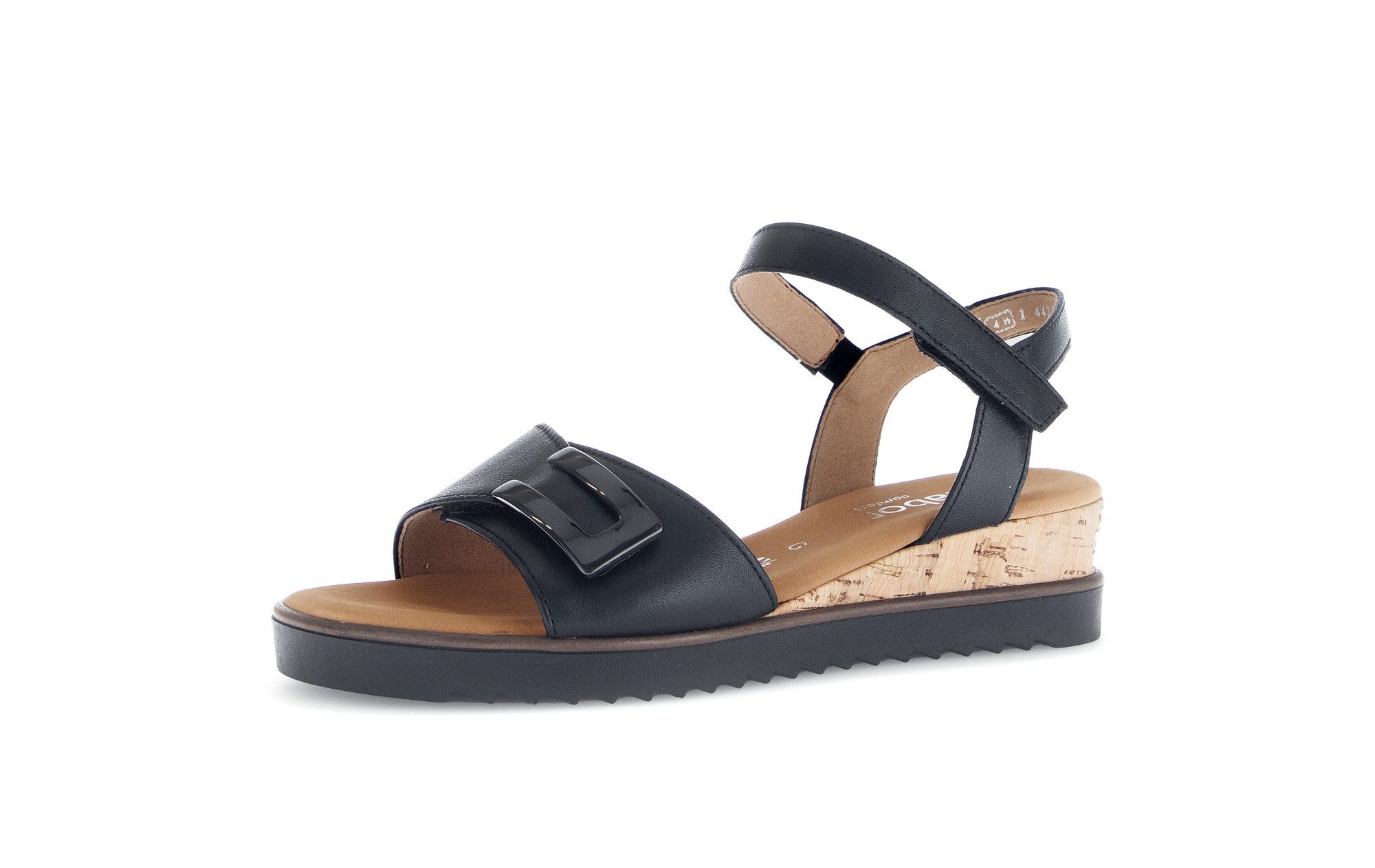 Mit den Keilsandaletten der Marke Gabor ist dein Urlaubs-Outfit komplett. Damit kannst du stilvoll und bequem die warmen Sommerabende genießen. Durch die Klettverschlüsse kannst du den Schuh individuell in der Weite anpassen und ihn schnell an- und ausziehen.