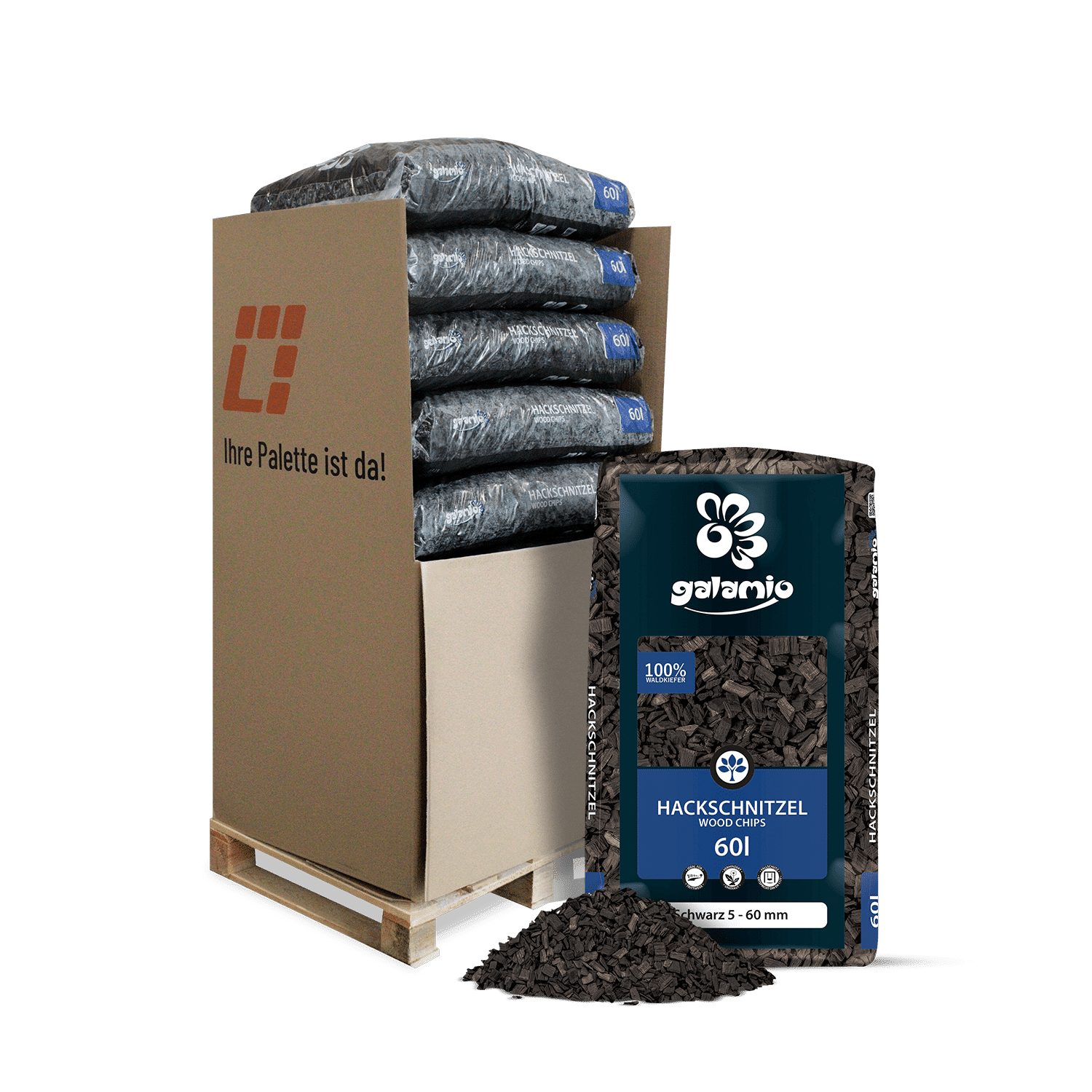 Unsere schwarzen Holzhackschnitzel der Marke GALAMIO® mit der Körnung 5-60 mm bringen starke Kontraste in Ihren Garten und setzen Beete sowie Wege perfekt in Szene. Mit den farbigen Holzhackschnitzeln gestalten Sie Ihre Außenflächen ganz individuell und lebendig. Hergestellt aus reinem Kiefernholz und gefärbt mit natürlichen Eisenoxiden sind sie unbedenklich für Umwelt und Boden – bringen Sie Farbe in den Garten, ohne der Natur zu schaden. Nach dem Auslegen bieten die Hackschnitzel bis zu drei Jahre lang ansprechende Optik und funktionalen Schutz für Ihre Gartenflächen. Sie helfen, den Boden vor starken Temperaturschwankungen zu schützen und reduzieren das Unkrautwachstum, wodurch sich der Pflegeaufwand verringert. Durch die Feuchtigkeitsspeicherung im Boden wird weniger Gießen erforderlich, und die Bodenstruktur bleibt geschützt. Besonders in warmen Monaten sorgen die Hackschnitzel dafür, dass die Pflanzen besser mit Wasser versorgt bleiben. Für eine kreative Gartengestaltung lassen sich die Holzhackschnitzel gut mit anderen Farben kombinieren und eignen sich ideal für Pflanztöpfe oder zwischen Sträuchern – ein echter Hingucker in Ihrem Garten! Setzen Sie Kontraste oder kreieren Sie Muster und Formen nach Ihren persönlichen Vorstellungen. Bestellen Sie die GALAMIO® Holzhackschnitzel ganz bequem und erhalten Sie die Ware direkt nach Hause geliefert. Die Lieferung erfolgt in praktischen 60-Liter-Säcken, die ordentlich auf einer Palette gestapelt sind und per Spedition zuverlässig ankommen. Je nach Bedarf können Sie zwischen 13, 26 oder 39 Säcken pro Palette wählen.