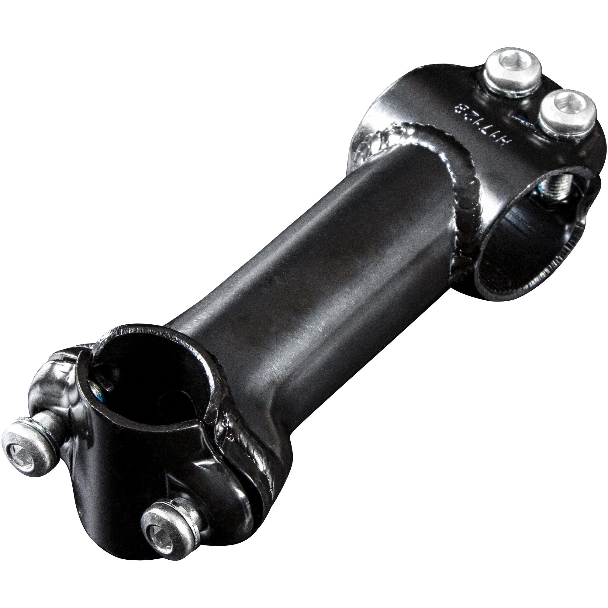 Der Lenkervorbau besteht aus robustem Stahl und wird einfach festgeschraubt. Das Klemmmaß für den Lenker beträgt 25,4 mm. Der Fahrradvorbau weist eine Winkelung von 5° auf und kann je nach Präferenz nach oben oder nach unten zeigend angebracht werden.