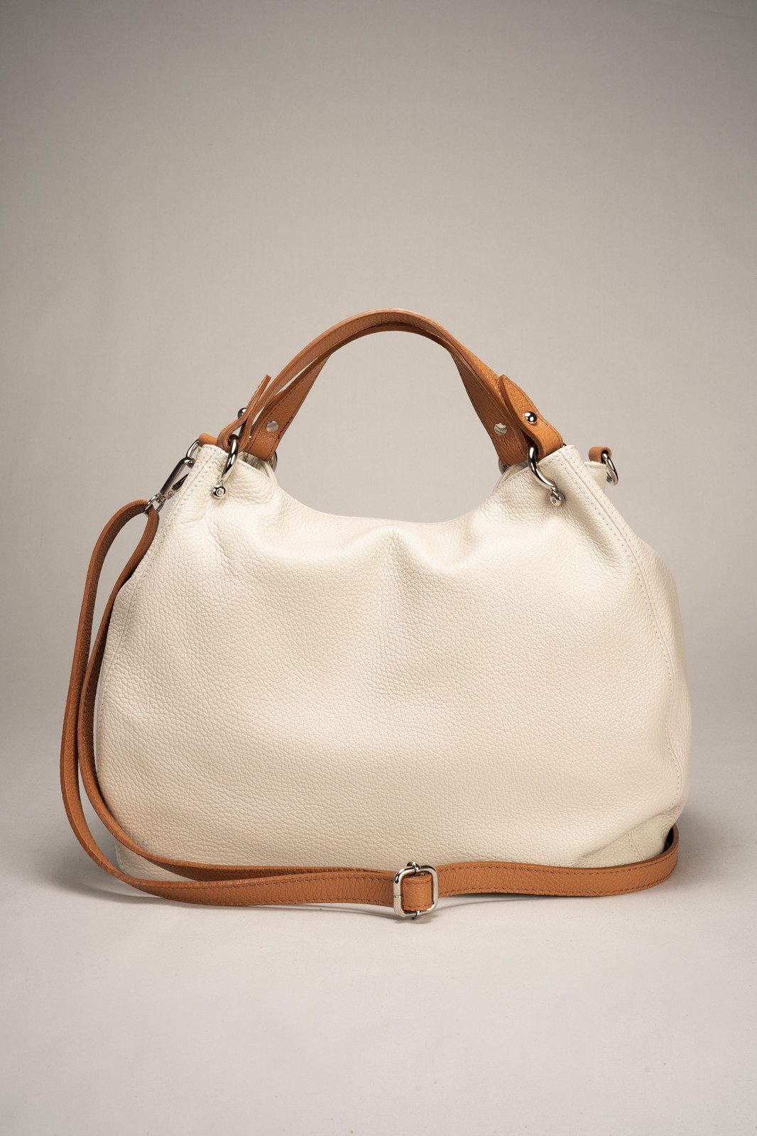 Handgefertigt aus echtem italienischem Leder, verkörpert sie die hohe italienische Handwerkskunst und vereint Eleganz mit Funktionalität. Entworfen als Henkeltasche lässt sie sich im Handumdrehen in eine schicke Umhängetasche verwandeln und begleitet Sie zu jedem Anlass durch den Tag; sei es im Büro, bei einem Treffen mit Freunden oder beim entspannten flanieren durch die Stadt.