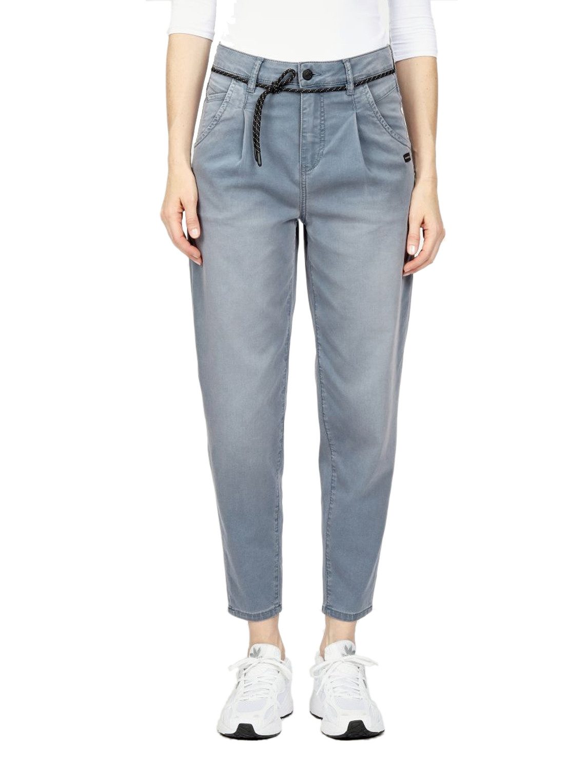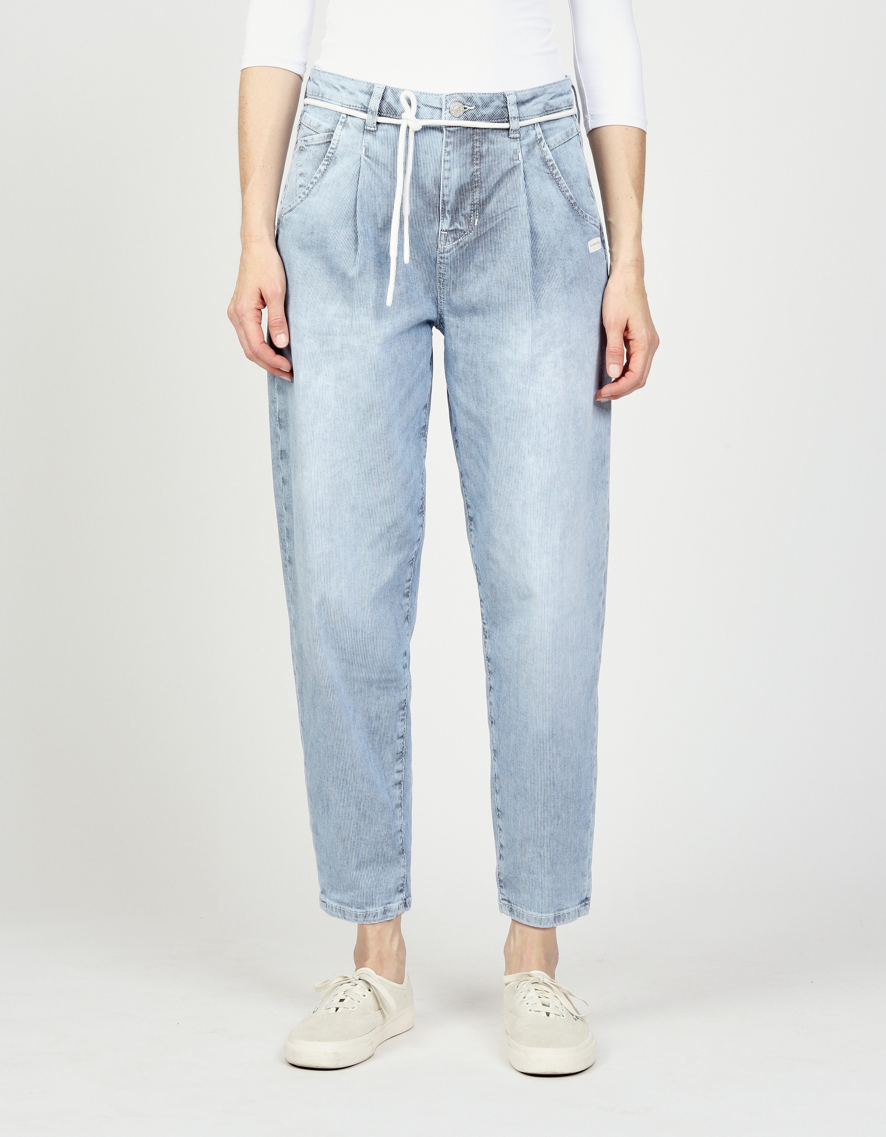 Bei allen deinen Freizeitaktivitäten machst du mit der 5-Pocket-Jeans »94VIA JOGGER« von GANG eine besonders gute Figur: Stecke den Saum deines Oberteils locker in den Bund der Jeans, um deine Figur zu betonen. Wunderbar dazu geeignet sind Stiefeletten mit breitem Blockabsatz.