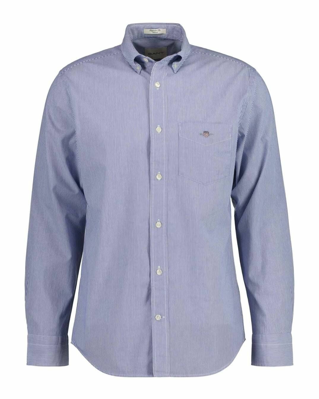 Gesucht und gefunden: Schau dir das Langarmhemd »REG POPLIN BANKER SHIRT« von Gant mal genauer an. Der Button-down-Kragen wird durch kleine Knöpfe am Hemd befestigt und kommt somit ohne Kragenstäbchen aus.
