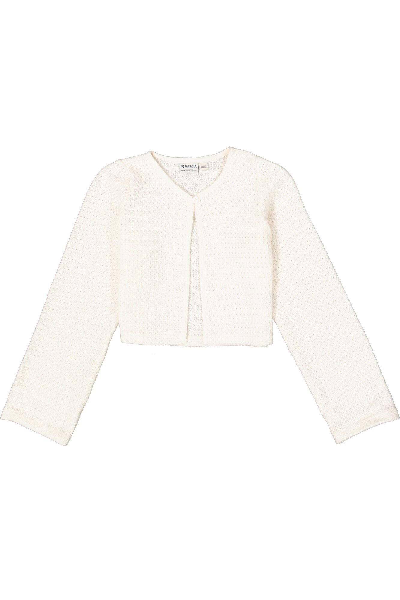 Die Garcia Strickjacke für Mädchen ist aus einer umweltfreundlichen Mischung von 65% recyceltem Polyester und 35% Baumwolle gefertigt, die sowohl Эко-товары als auch Komfort gewährleistet. Ihr elegantes Design in warmem Weiß mit einem feinen Lochmuster und einem praktischen Knopfverschluss macht sie zur perfekten Wahl für vielseitige Anlässe von Kindergarten bis Freizeit. Die Jacke ist ideal für die kühleren Tage und lässt sich wunderbar mit verschiedenen Outfits kombinieren, was sie zu einem unverzichtbaren Bestandteil jeder Mädchen-Garderobe macht.