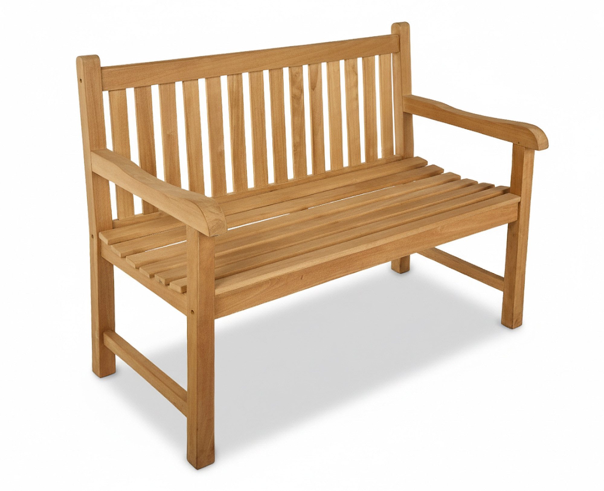 Die Gartenbank ist aus Teak gefertigt und hat sehr stabile Zapfenverbindung und Verschraubungen mit Metallgewinde.