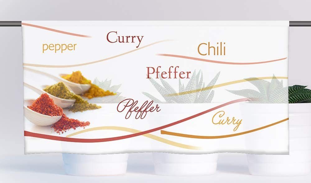 Diese tolle Cafehausgardine von gardinen-for-life verzaubert Ihr Küchenfenster im Nu. Mit exklusiven Motiven, die weit über gewöhnliche Cafehaus-Motive hinausgehen bringt die Gardine frischen Wind in Ihre Küche. Diese transparente Cafehausgardine aus feiner transparenter Voile mit einem sehr schönen Motiv wird für Sie in Deutschland produziert! Die Cafehausgardine verfügt oben über einen Saum, um ihn an einen Scheibenstab zu hängen. Unten hat der Scheibenhänger eine Normalen Saum 100% Polyester, waschbar bei 30°C