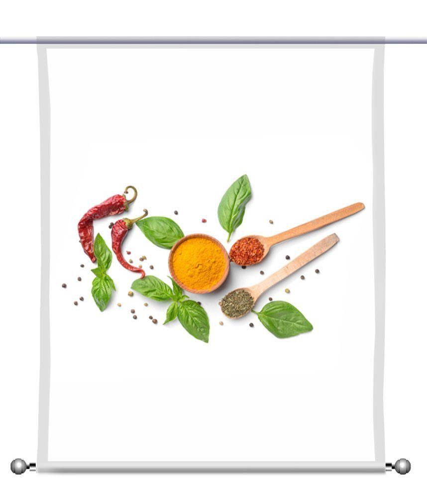 Scheibengardine Küchenfreuden Curry - rechteckig mit Beschwerung, Scheibenhänger