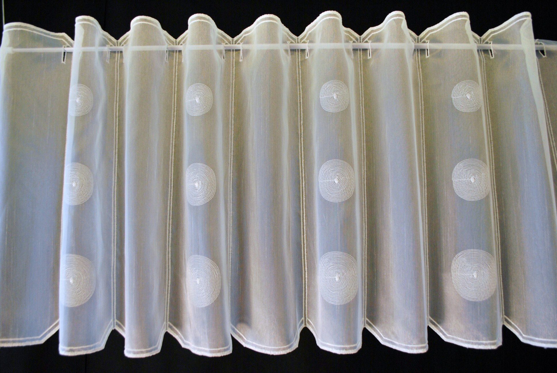 Scheibengardinen bestickt 48 cm hoch natur - Wunschbreite frei wählbar durch gekaufte Menge in 16 cm Schritten - Meterware