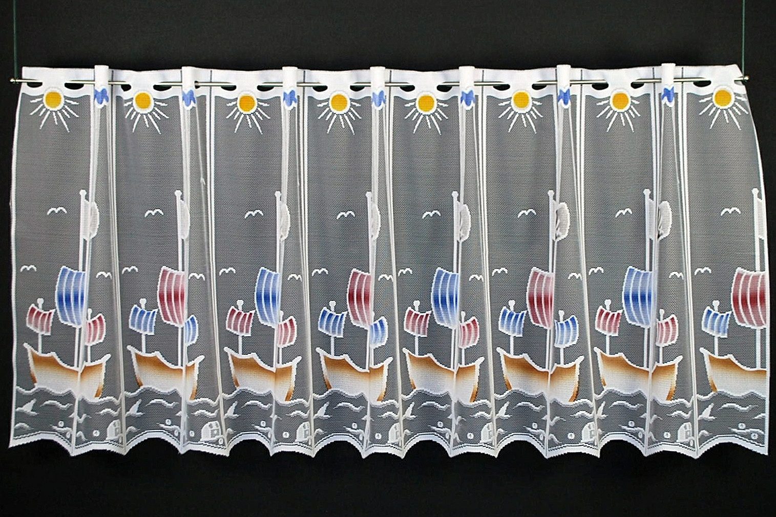 Gardinen Kranzusch Scheibengardine für Kinder Piratenschiff 60x122,5 cm H/B weiß mit bunt Bistrogardine Vorhang Küche 1er Pack