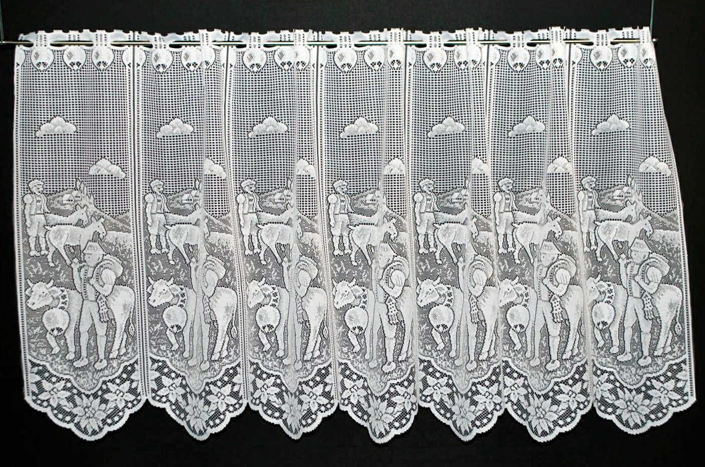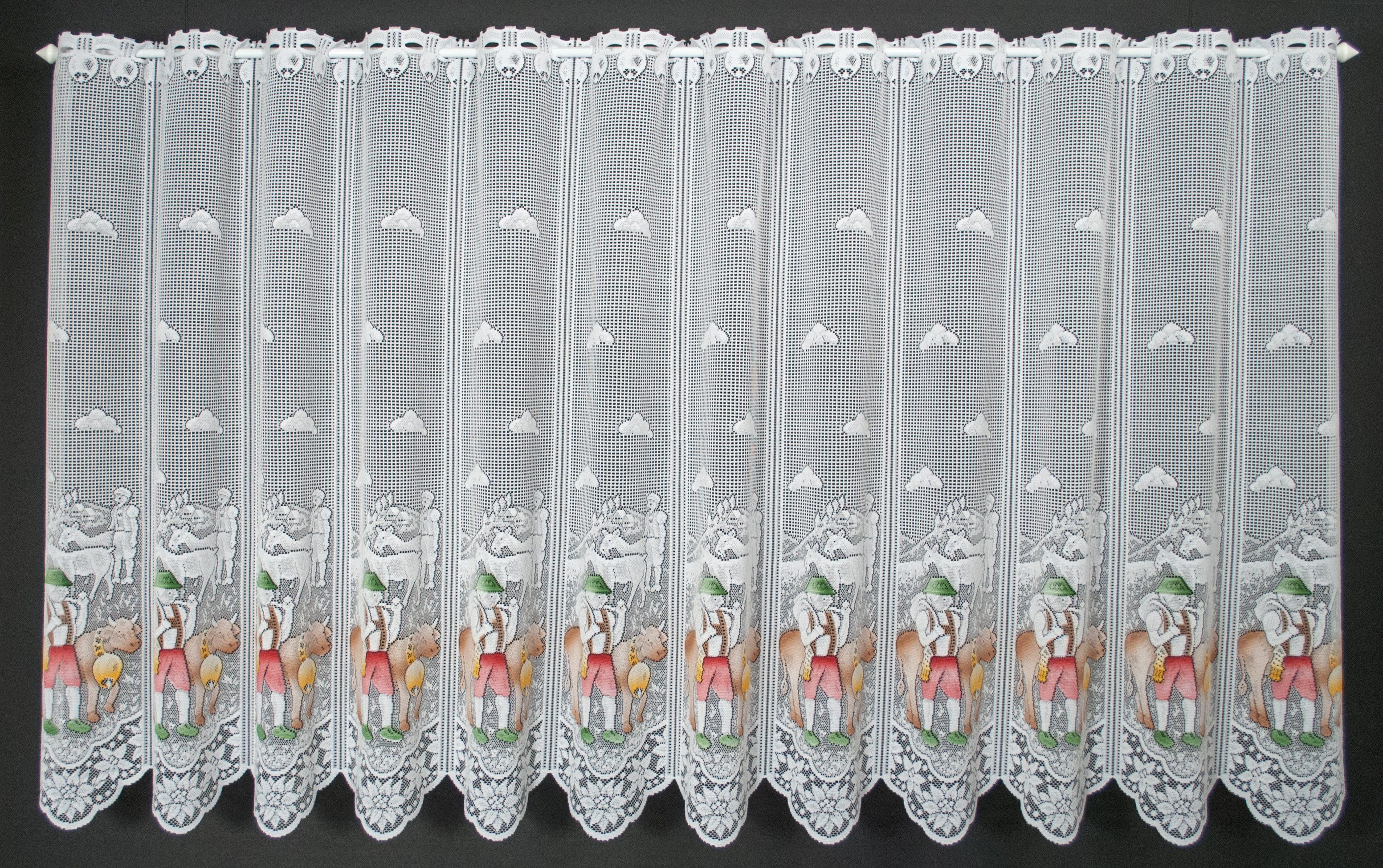 Scheibengardine Kühe u. Alphirte 60 cm hoch Weiß - Wunschbreite frei wählbar durch gekaufte Menge in 19 cm Schritten - Meterware