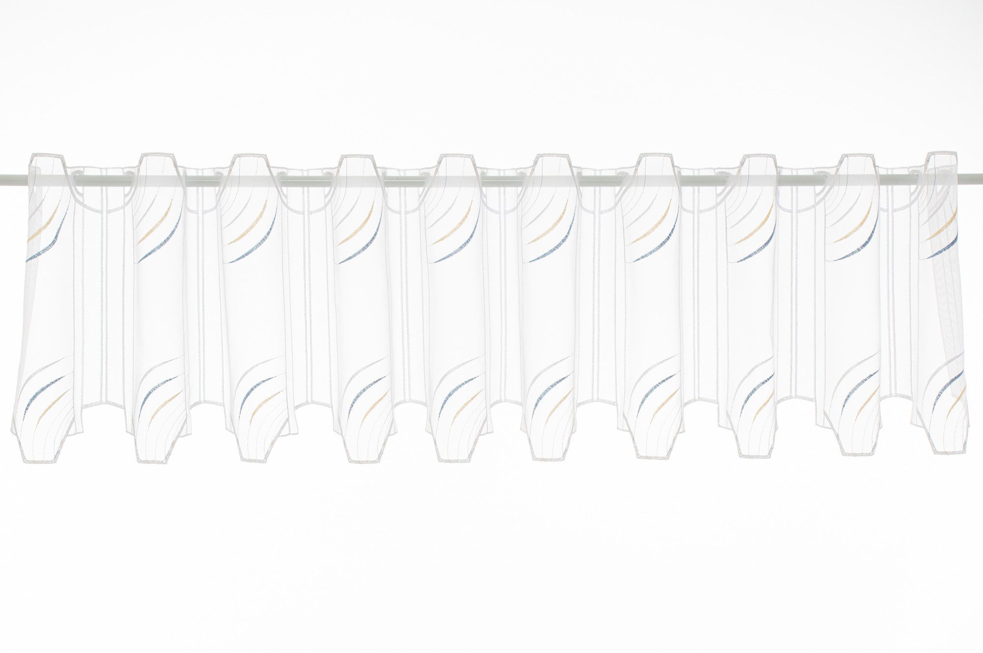 Scheibengardine mehrfarbigen Stickbögen 30 cm hoch weiß blau creme - Wunschbreite frei wählbar durch gekaufte Menge in 16 cm Schritten - Meterware