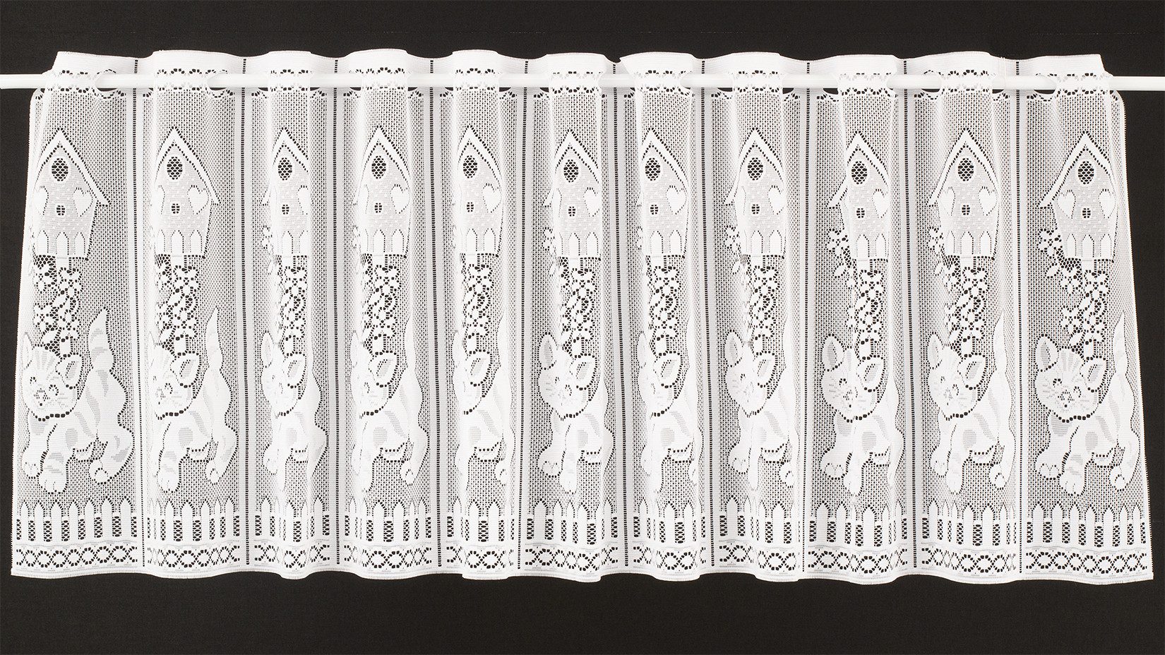 Gardinen Kranzusch Scheibengardine Vogelhaus und Katze 45x70 cm H/B weiß Bistrogardine Vorhang Küche 1er Pack