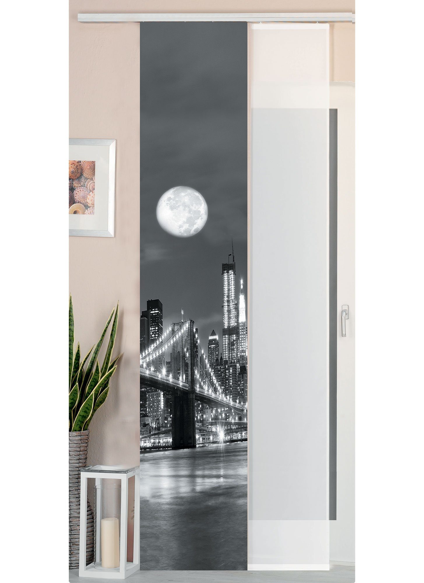 Hinweis Aufhängung | Befestigung mit Flauschband einfach abnehmbar und leicht anzubringen, Die Gardinen sind mit Klettband incl. Paneelwagen und Beschwerungsstangen ausgestattet. |