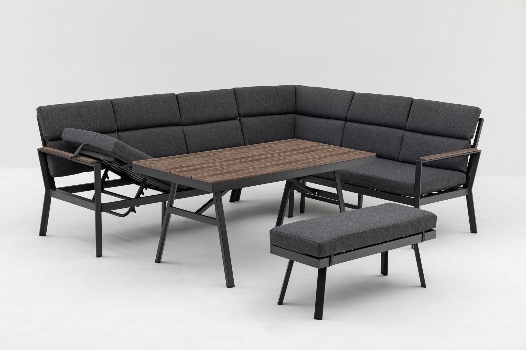 Set beinhaltet | Ecklounge inkl. Kissen, Bank inkl. Auflage, Tisch |