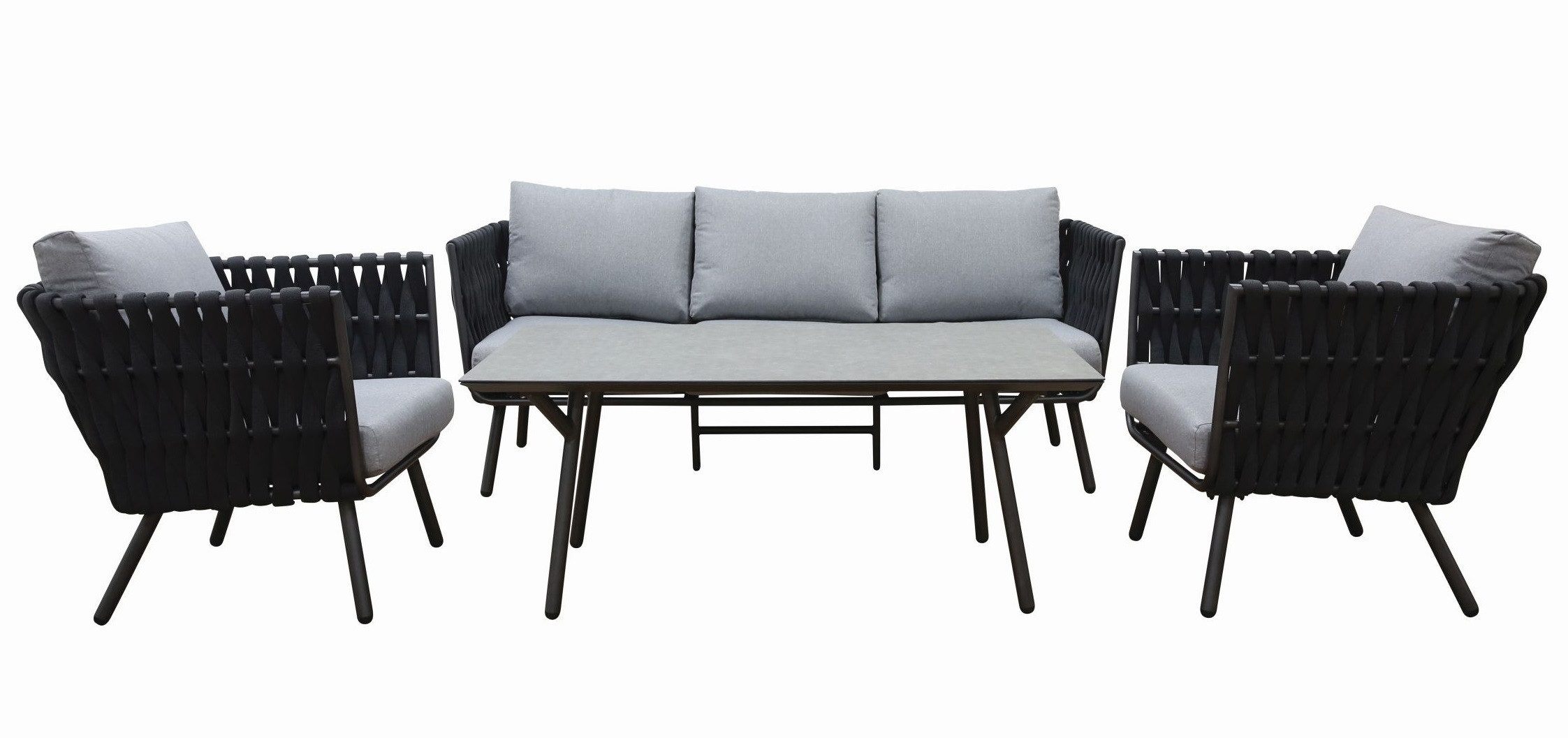 Lieferumfang | 3-Sitzer-Bank inkl. Kissen 2 Sessel inkl. Kissen Tisch |