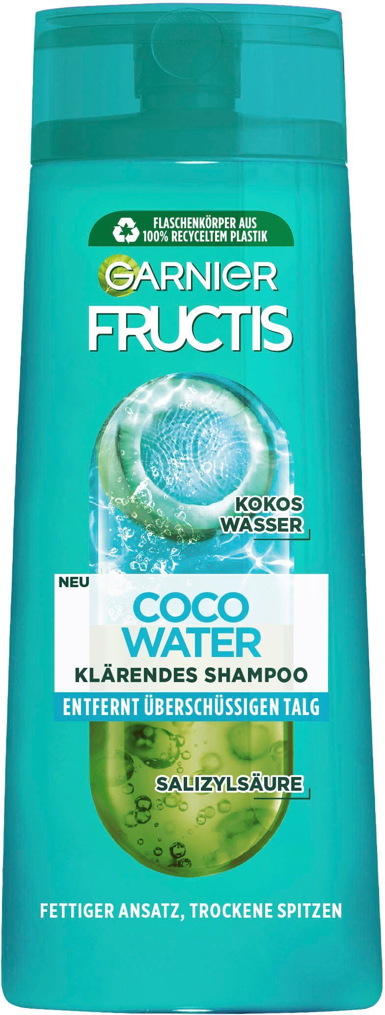 Anwendung | Garnier Fructis Coco Water Kräftigendes Shampoo auf das nasse Haar auftragen und sanft auf der gesamten Kopfhaut einmassieren. Anschließend gründlich ausspülen. |