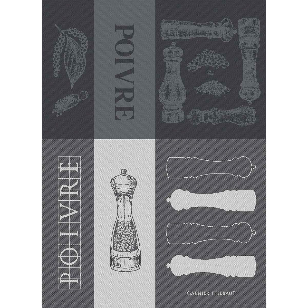 Pflegehinweise | MotivbeschreibungDieses Geschirrtuch zeigt ein stilisiertes Design mit verschiedenen Pfeffermühlen und Pfefferkörnern, die in einem grafischen Stil gezeichnet sind. Die Farbpalette ist dezent und besteht aus verschiedenen Grautönen, die dem Design eine elegante und moderne Note verleihen. Das Motiv ist eindeutig von der Küche und dem Gewürzen inspiriert, was es zu einem praktischen und ästhetischen Accessoire für jede Küche macht. |