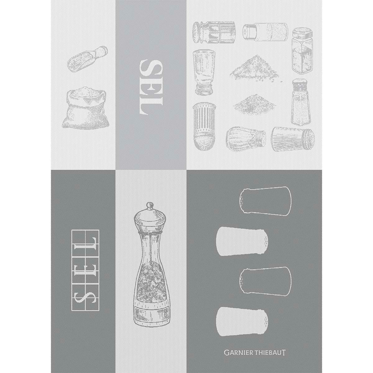 Pflegehinweise | MotivbeschreibungDieses Geschirrtuch präsentiert ein stilvolles Design mit einem Motiv, das sich auf Salz und Gewürze konzentriert. Es zeigt verschiedene Darstellungen von Salzstreuern, Mühlen und Säcken, die in einem grafischen Muster angeordnet sind. Die Farbpalette ist dezent und besteht hauptsächlich aus verschiedenen Grautönen und Weiß, was dem Tuch eine elegante und moderne Ausstrahlung verleiht. |
