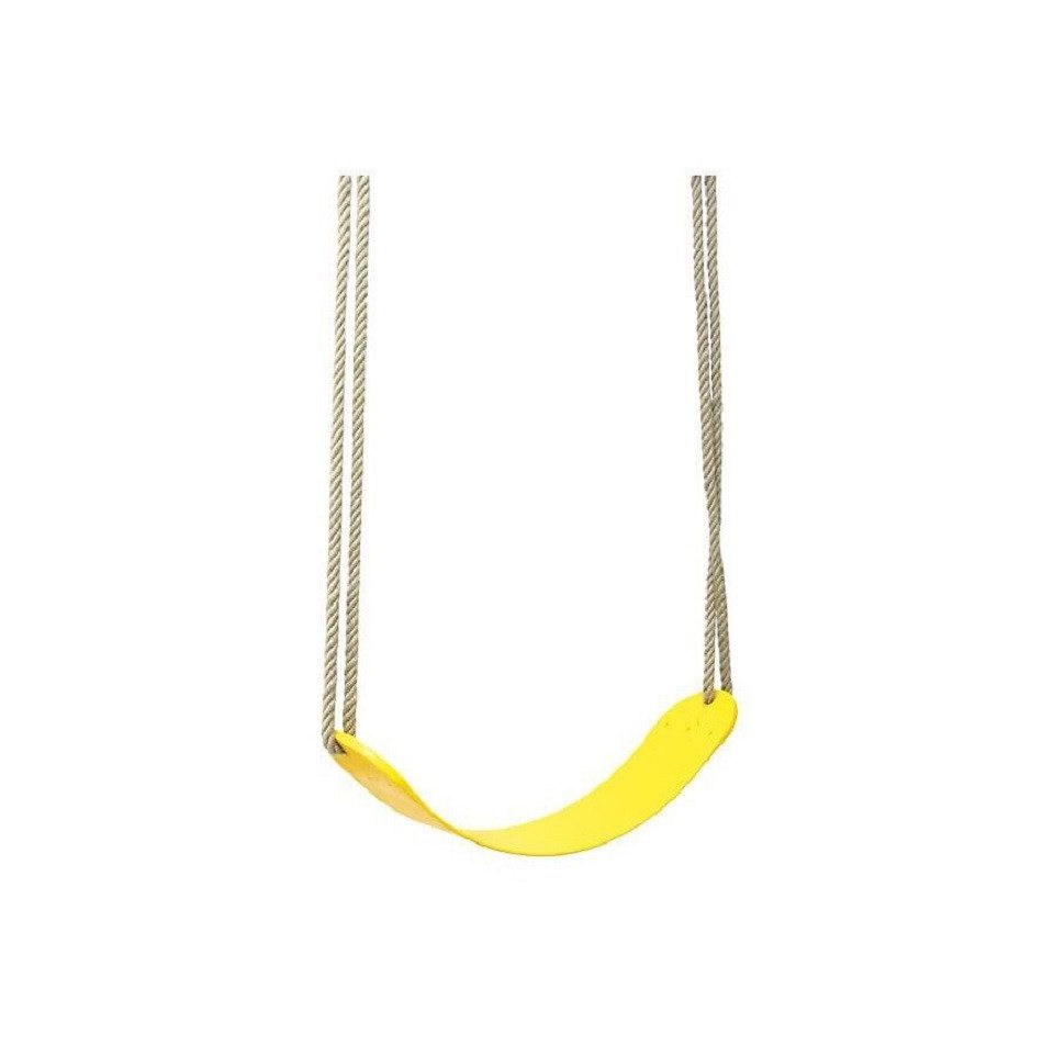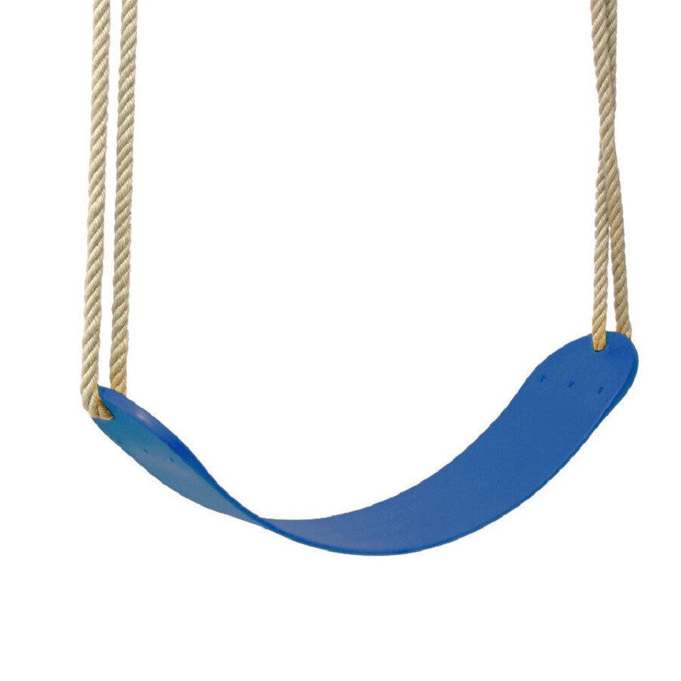 Elastischer Schaukelsitz aus Gummi in blau oder gelb mit Seilen aus Polyhemp für die Kinder-Schaukel im Garten. Der biegbare Gummisitz mit verstellbaren Seilen paßt sich perfekt der Размер der Kinder an.