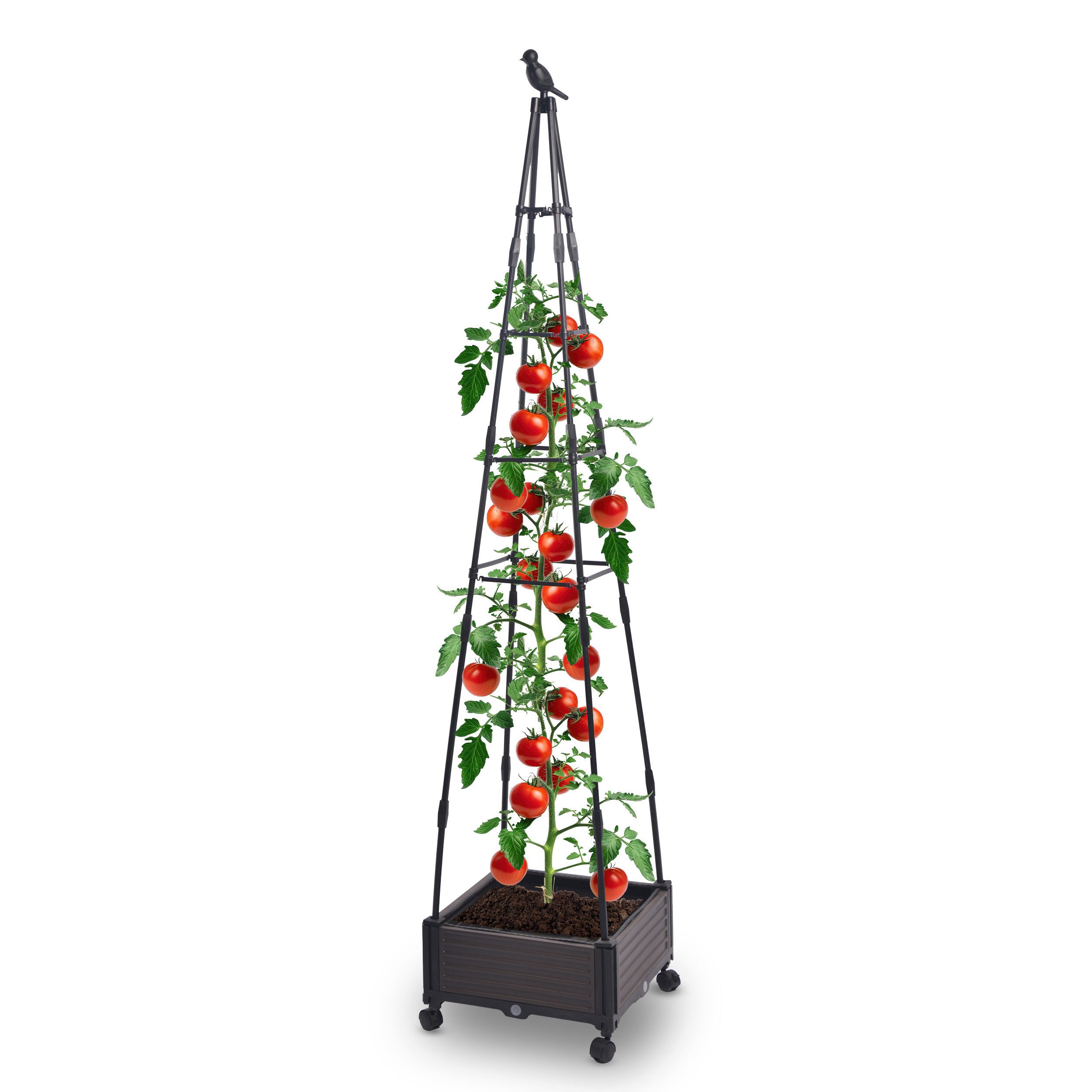 Der Blumentopf mit Rankhilfe bietet viel Platz und festen Halt für Kletterpflanzen. Die 200 cm hohe Struktur ist für das dynamische Wachstum von Kletterpflanzen konzipiert und das dekorative Vogel-Element sorgt für Charme.
