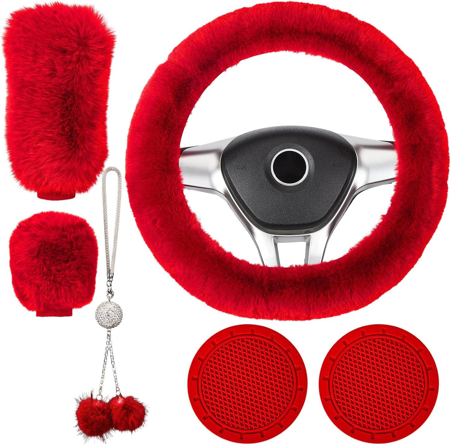 6-TEECE INTERIOR BOUTIQUE SET: Inklusive Lenkradabdeckung, Cup Pad, Anhänger, Handbremse Abdeckung und Schalthebel Abdeckung, kann Ihr Auto gut dekorieren und haben ein sehr komfortables Gefühl.