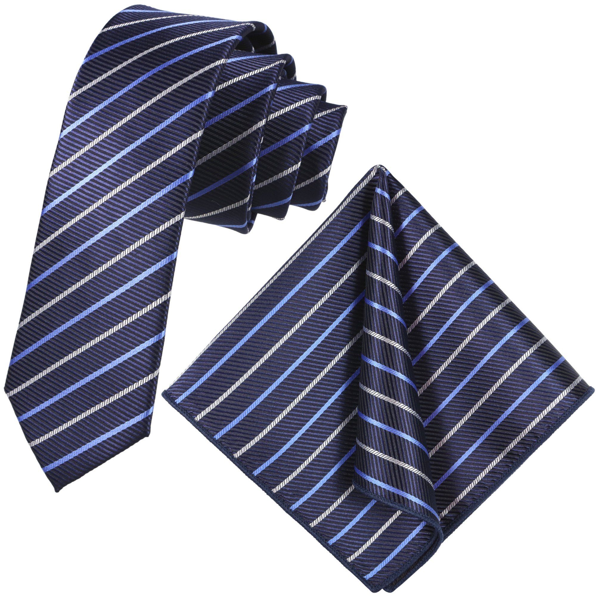 Stylische Streifen-Krawatten-Sets mit passendem Einstecktuch, in edlen Farben und eingewebtem Dekor, verwandeln das Outfit in einen feschen Look und die Garderobe erhält eine ganz besondere Note aus längst vergangenen Tagen.