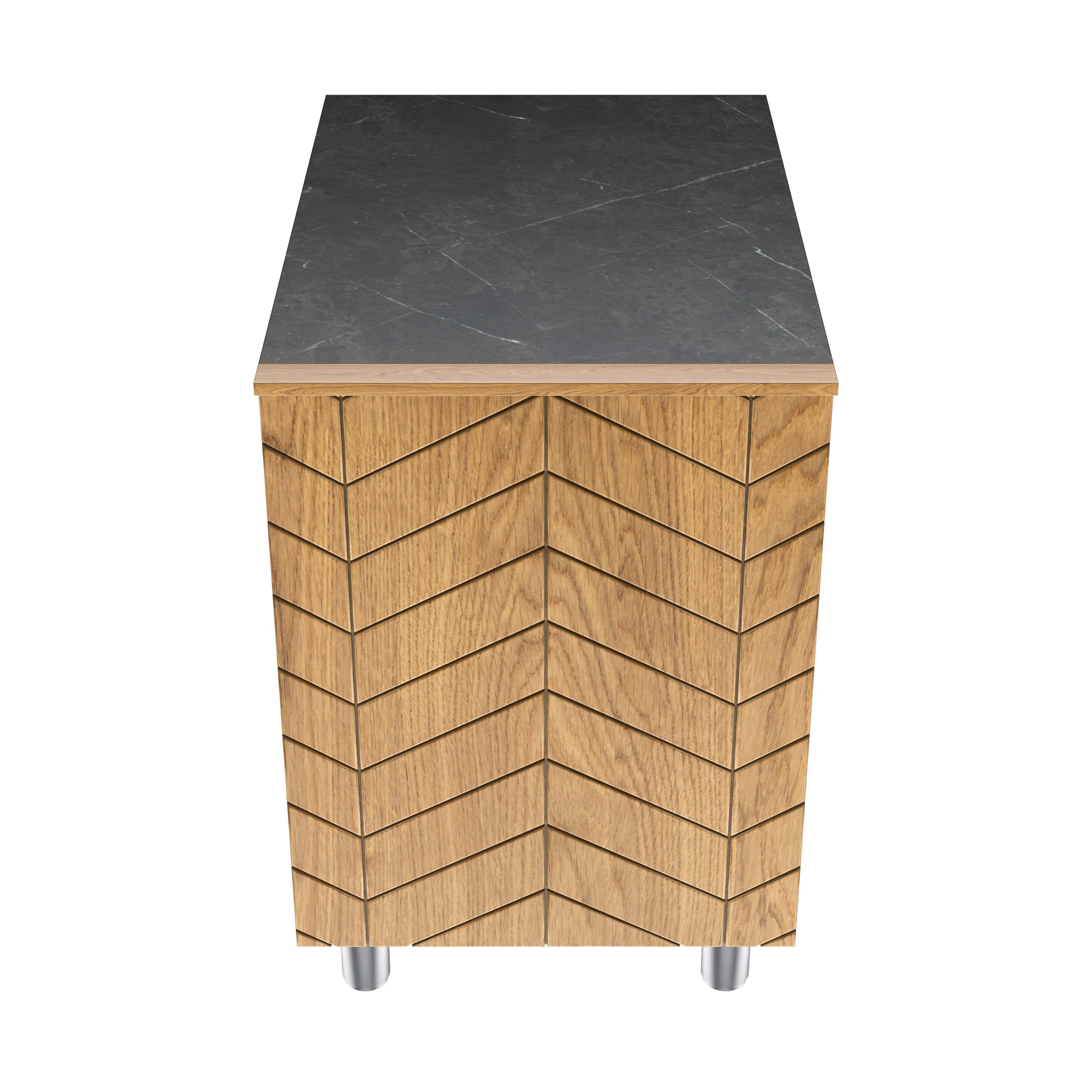 Das herausragende Design besticht durch eine elegante LED-Fischgrätenverkleidung, die in Kombination mit dem schwarzen Compact im Marmor-Design einen modernen, luxuriösen Look schafft. Diese hochwertige Optik macht den Kassentisch zu einem echten Blickfang in jeder Verkaufs- oder Küchenumgebung und unterstreicht den hohen Qualitätsanspruch Ihres Betriebs.