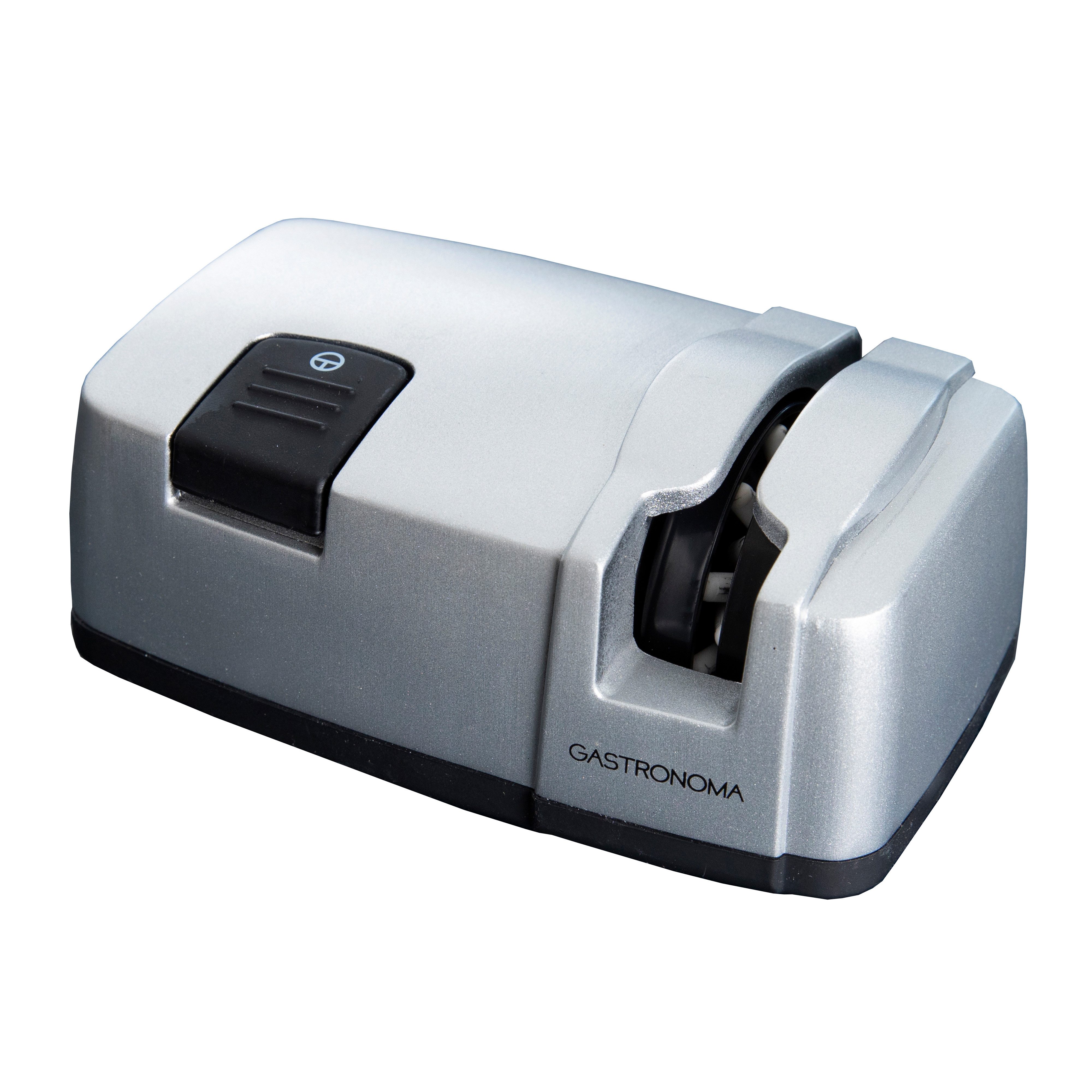 Der Gastronoma Messerschärfer ist einfach zu bedienen. Das Gerät wird auf eine ebene Fläche gestellt und an eine Steckdose angeschlossen. Einschalten und die Schleifscheiben beginnen sich zu drehen. Führen Sie die Messerkante mittig zwischen die Schleifscheiben ein. Die Messerkante muss parallel zur Tischplatte gehalten werden. Drücken Sie das Messer leicht nach unten und ziehen Sie es langsam zu sich hin, während Sie den Druck aufrechterhalten. Wiederholen Sie den Vorgang, falls nötig.