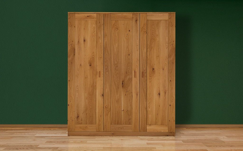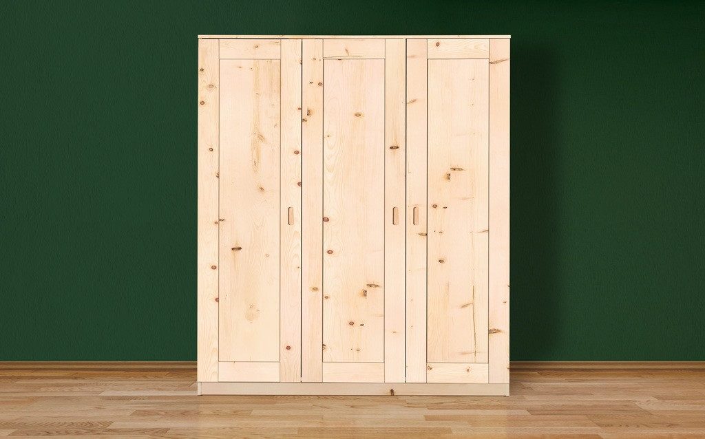 Erhältlich in zwei Вариантыn: 2-türig (116 × 210 × 60 cm) oder 3-türig (174 × 210 × 60 cm). Kombinieren Sie den Schrank mit einem passenden Zirbenbett oder einer Kommode aus unserem Меню – für ein stimmiges Natur-Schlafzimmer.