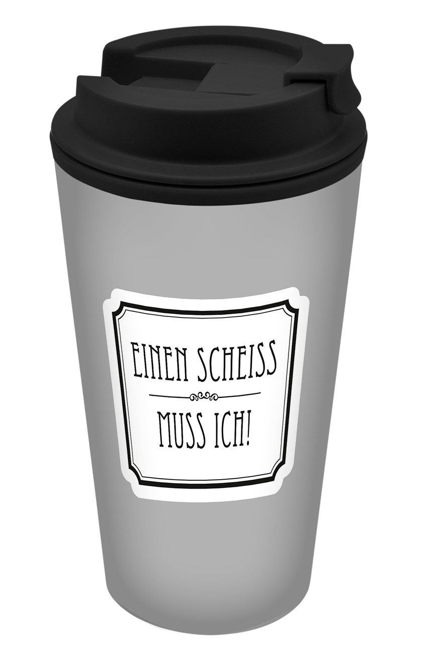 Der Coffee to go Becher Einen Scheiss muss ich 400ml besteht aus PP. Der graue Kaffeebecher für unterwegs ist doppelwandig und hält dein Getränk warm. Der To go Becher eignet sich als schöne Geschenkidee für sarkastische Freunde und Kolleg:innen mit schwarzem Humor. Der Schraubverschlussdeckel ist dank seiner Silikondichtung und Verschlusskappe auf der Trinköffnung auslaufsicher. Der To go Becher mit sarkastischem Spruch ist praktisch für Heißgetränke wie Kakao, Tee oder Kaffee.