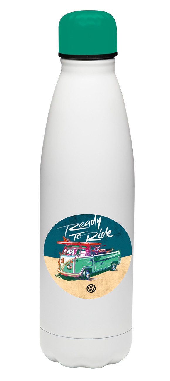 Die Isolierflasche VW Ready to Ride aus robustem Edelstahl ist doppelwandig und vakuumisoliert, lebensmittelecht und hat ein Fassungsvermögen von 500ml. Das kultige Design der Flasche zeigt den VW T1 oder besser bekannt als Bulli, in einer Pritschen-Version mit Surfbrettern. Die Flasche im Original VW Design lässt jedes begeisterte Fahrerherz des kultigen Bullis höher schlagen. Zur Reinigung der Flasche empfehlen wir eine Flaschenbürste.