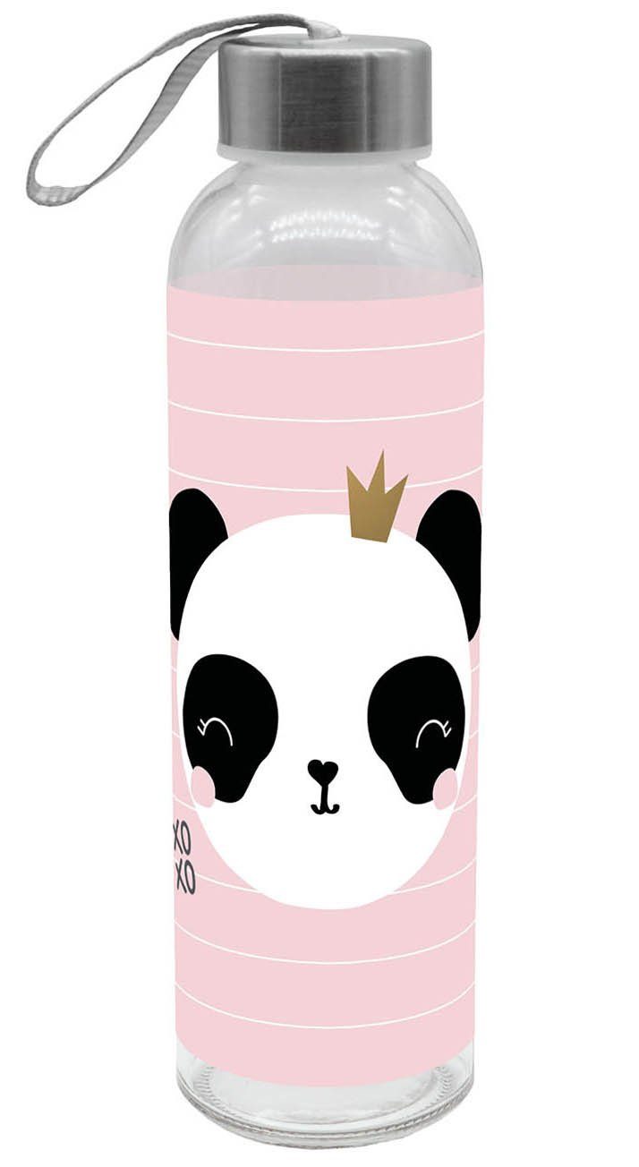 Die Trinkflasche Panda XOXO Glas 500ml hat einen rosa Hintergrund mit weißen Linien. Die Panda Flasche sendet „Hugs and Kisses“, hat unsere Designerin verraten… XO XO. Das X ist der Kuss und das O die Umarmung. Darauf muss man erstmal kommen. Lange Rede – kurzer Sinn… Diese Flasche mit dem Krönchen Panda gehört in jede Schultasche, Arbeitstasche oder Rucksack. Der silberne Drehverschluss verfügt über eine graue Trageschlaufe. Mit 500 Milliliter Fassungsvermögen ist die Glastrinkflasche ein schöner Begleiter für die Schule, Uni, das Büro oder einfach für unterwegs.
