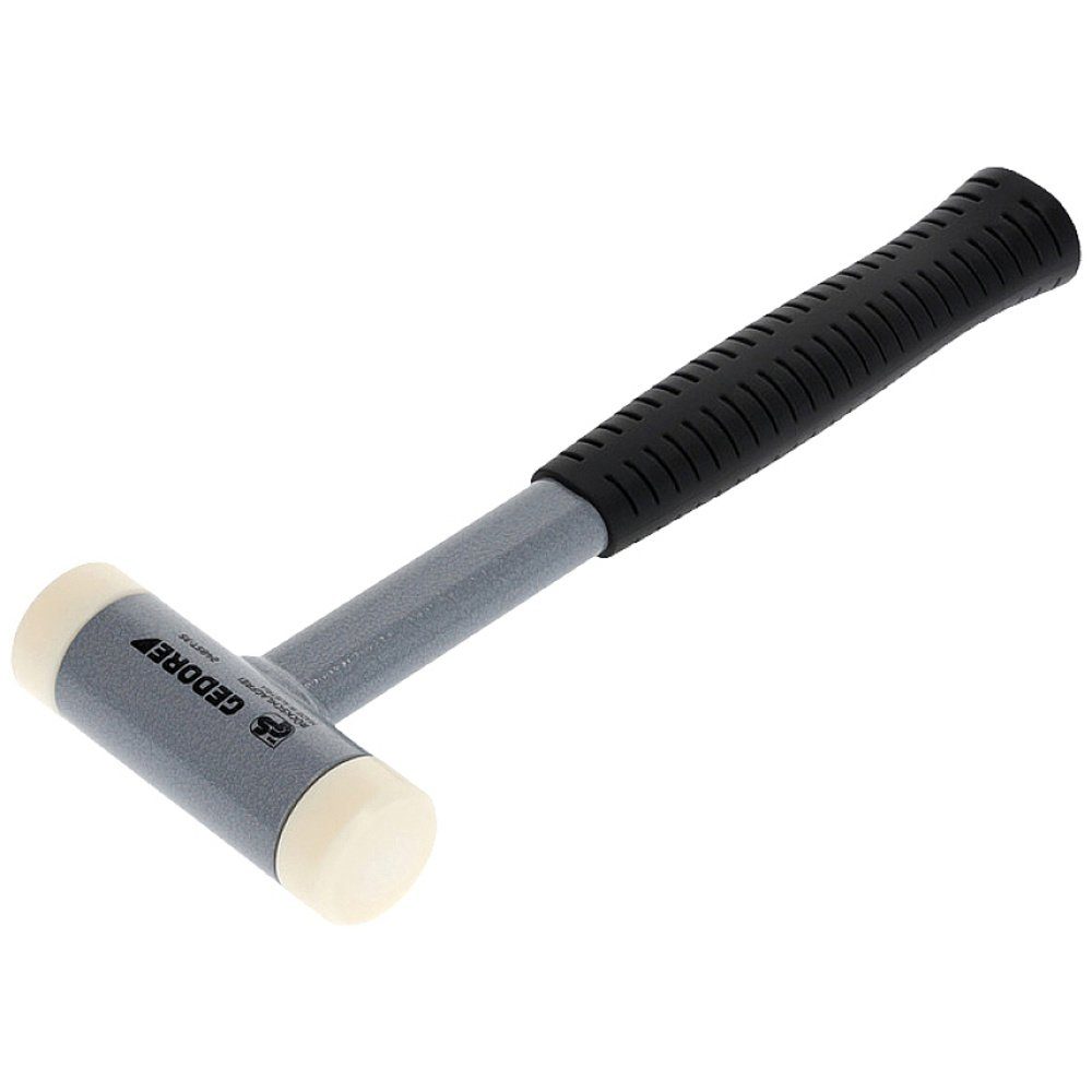 Rückschlagfreier Schonhammer mit äußerst stabilem und robustem Stahlrohrstiel. Splitterfreie, bruch- und verschleißfeste Polyamid-Köpfe. Hammerschlagsilber pulverbeschichtet