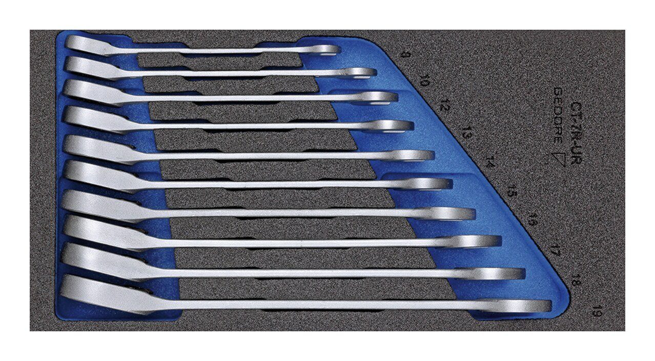 10 Maulschlüssel mit Ringratsche 8; 10; 12; 13; 14; 15; 16; 17; 18; 19 mm.