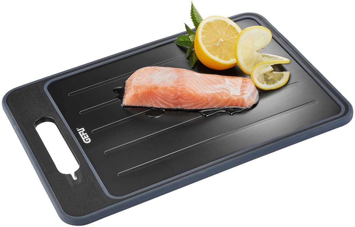 Gefu Auftau- und Schneidebrett CUT PRO: Revolutionäres 2-in-1-Talent für Ihre Küche! Frische Lebensmittel blitzschnell auftauen und präzise schneiden? Mit dem Gefu Auftau- und Schneidebrett CUT PRO kein Problem! Diese innovative Küchenhilfe vereint zwei Funktionen in einem und spart Zeit und Platz.