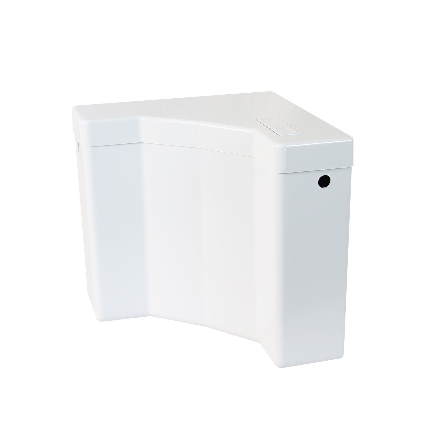 Dieser WC Eck-Spülkasten ist individuell von zwei Seiten anschließbar (rechts, links). Unser Aufputzspülkasten ist vollisoliert gegen Spritzwasser und Fließgeräusche. Der Spülkasten zeichnet sich aus durch eine Start-Stop-Taste und besitzt ein geräuscharmes Füllventil, welches mit einer Spülwassermenge von 6-9 Litern eingestellt werden kann. Geliefert wird dieser Spülkasten mit einem komplettem Zubehörset für Anschluss und Montage.