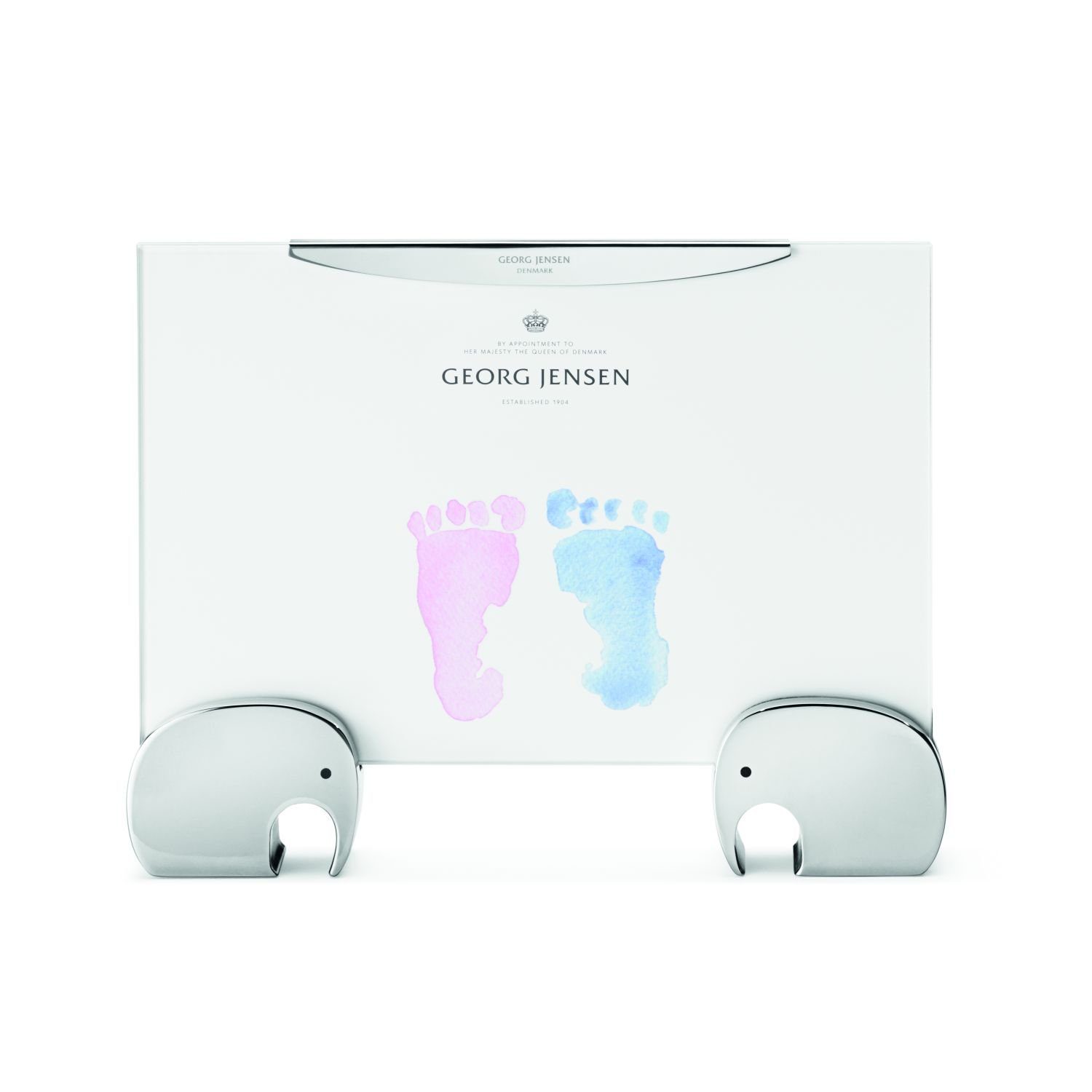 Im Bilderrahmen mit den zwei kleinen Elefanten im legendären Georg Jensen Design, der für Fotos mit den Maßen 13x18 cm geeignet ist, können Sie Ihre schönsten & wertvollsten Erinnerungen aufbewahren. Sowohl die zwei kleinen Elefanten aus hochglanzpoliertem Edelstahl, als auch die Edelstahlhalterung lassen sich mit wenigen Handgriffen anders befestigen, sodass der Bilderrahmen für Bilder im Hoch-, als auch im Querformat verwendet werden kann. Der Rahmen ist 20 cm lang, 14 cm breit und 2,5 cm tief.