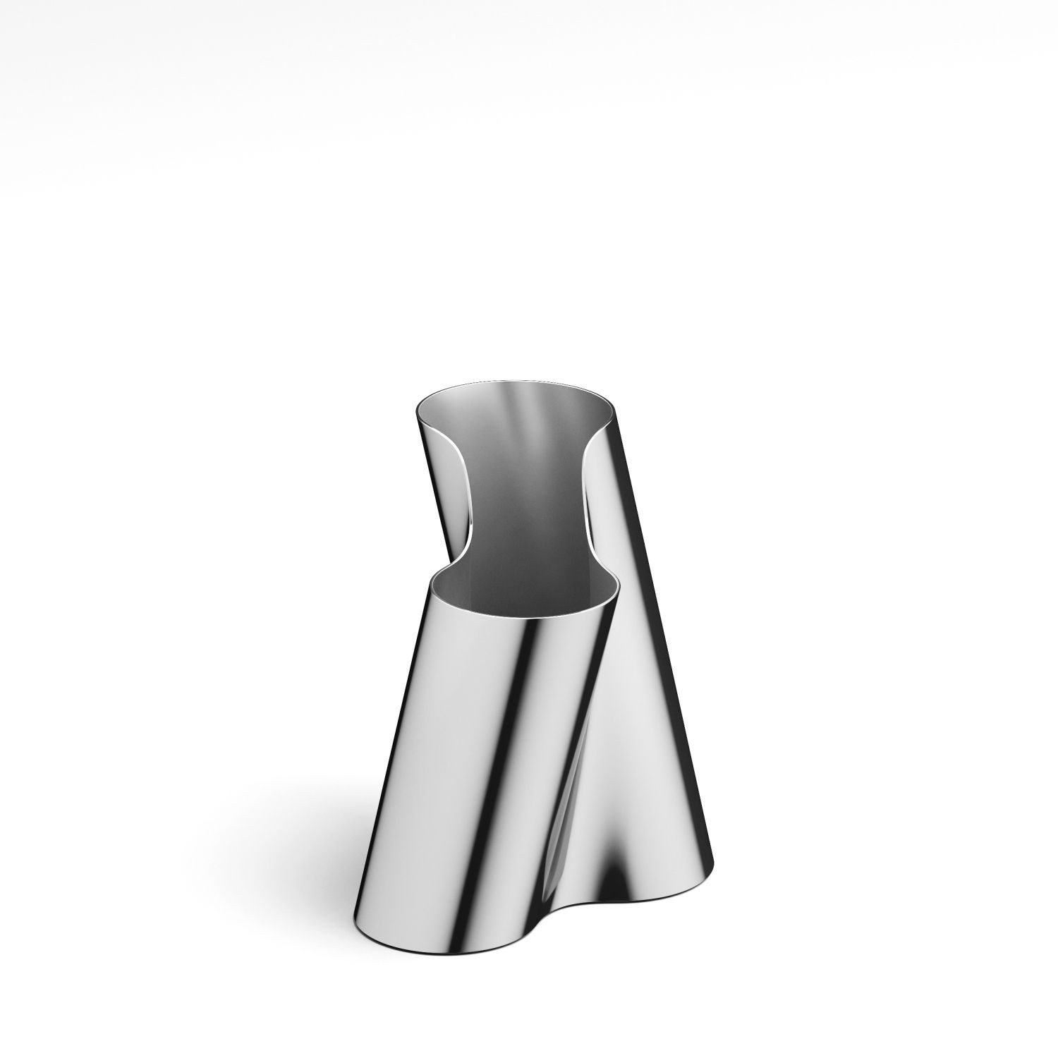 Die Designerin Anne Boysen hat mit einem mathematisch geprägten Ansatz die Vasen-Serie Lituus geschaffen, deren diagonale Form den Vasen nicht nur ein einzigartiges Aussehen verleiht, sondern durch sorgfältigen Einsatz von verschiedenen Winkeln dafür sorgt, dass jede Blüte eines Arrangements während ihres kompletten Lebenszyklus gestützt wird. So sehen Blumen auch dann noch schön aus, wenn sie sich im Laufe der Zeit verändern. Die Vasen werden aus handpoliertem Edelstahl hergestellt, ihre elegante Form lädt förmlich dazu ein, Blumen auf ganz unterschiedliche Art und Weise zu arrangieren. Die mittelgroße Vase ist 20,4 cm hoch, 13,3 cm breit und 15,9 cm tief.