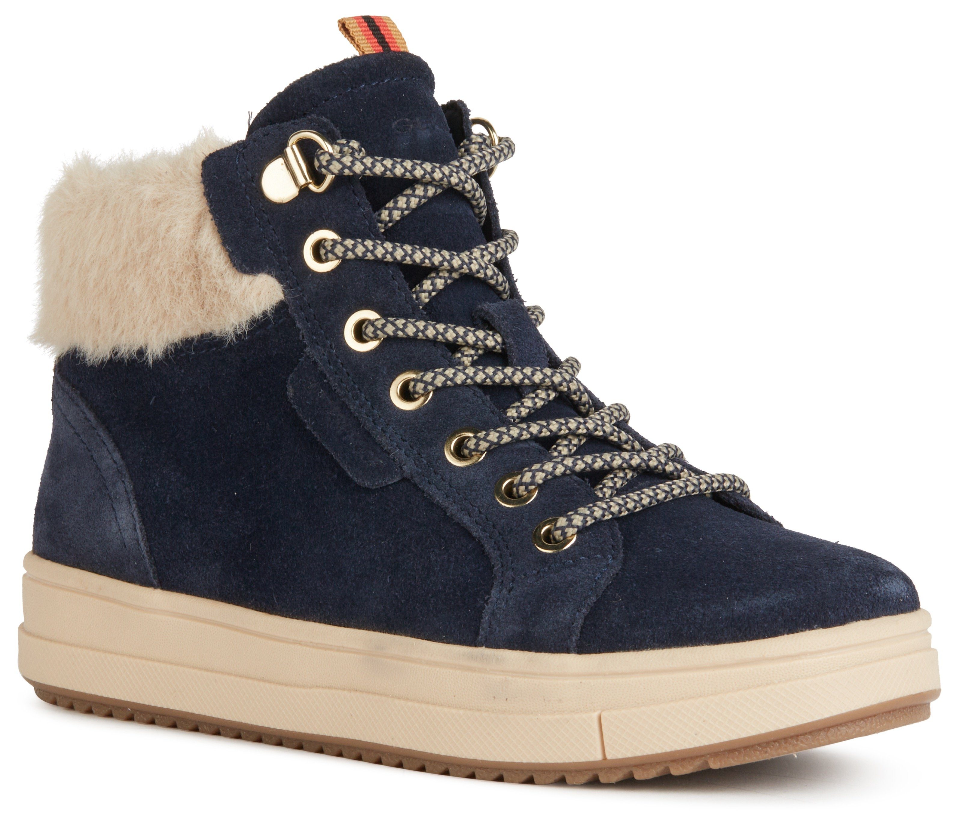 Dank der GEOX-(Spezial)Membrane bleiben die Füße trocken und vor Nässe geschützt, selbst bei Regen oder beim Gehen durch Pfützen. Innerhalb des Schuhs sorgt das Futter für eine angenehme Wärme. Die herausnehmbare Warmfutter-Innensohle ermöglicht eine individuelle Anpassung und einfache Reinigung. Diese Winterboots in mittlerer Weite sind ideal für normal breite Füße. Ein gut sitzender Kinderschuh bietet vorne genug Platz, damit sich die Füße beim Laufen natürlich abrollen können. Nutze die Daumenprobe oder stelle das Kind auf die herausnehmbare Sohle, um die richtige Размер zu finden.