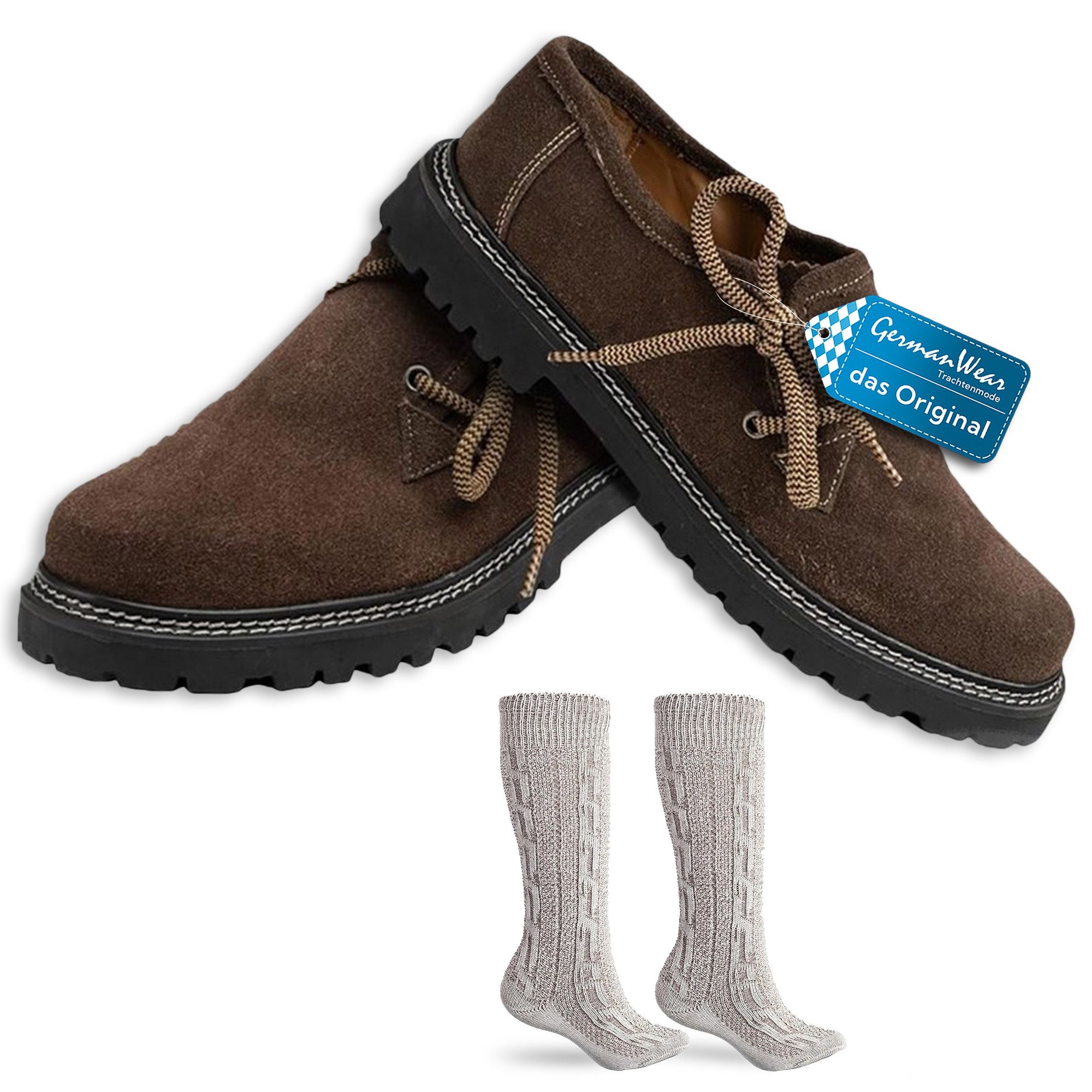 Bayerische Trachtenschuhe + Trachtensocken Original, Dunkelbraun, Schwarz