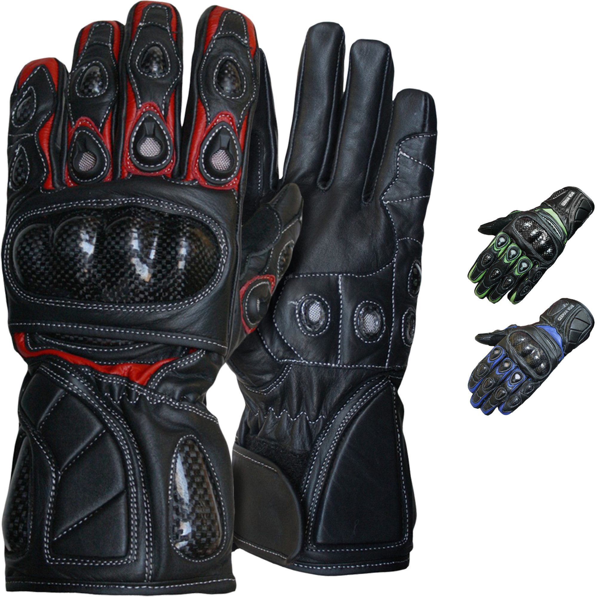 Motorrad-Handschuhe aus feinstem Rindsleder, Grün, Blau, Rot/Schwarz
