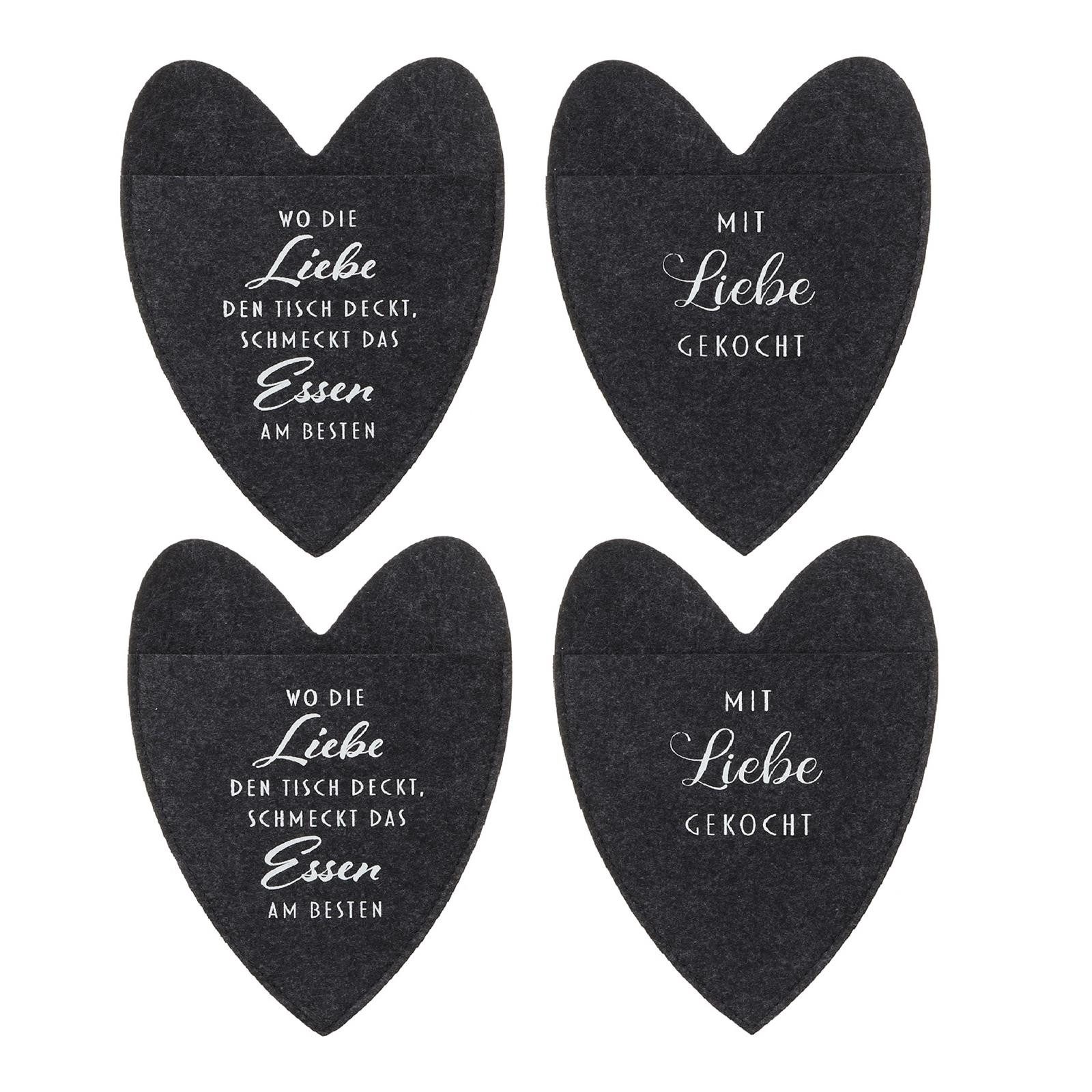 Es freut mich, dass du dich für die Bestecktaschen interessierst. Im Lieferumfang sind insgesamt 12 Bestecktaschen enthalten, die jeweils in zwei verschiedenen Designs sortiert sind. Die Sprüche „Für meine Lieblingsgäste“ und „Schön, dass Du da bist“ verleihen deiner Tischdekoration eine persönliche Note und sind perfekt für jeden Anlass, sei es eine Feier oder der tägliche Gebrauch. Die Bestecktaschen haben eine Размер von etwa 23 cm in der Длина und 15 cm in der Breite, mit einer Dicke von 0,4 cm. Sie bestehen aus 100% Polyester Filz und sind in zwei Farben erhältlich: Schwarz und Grau.