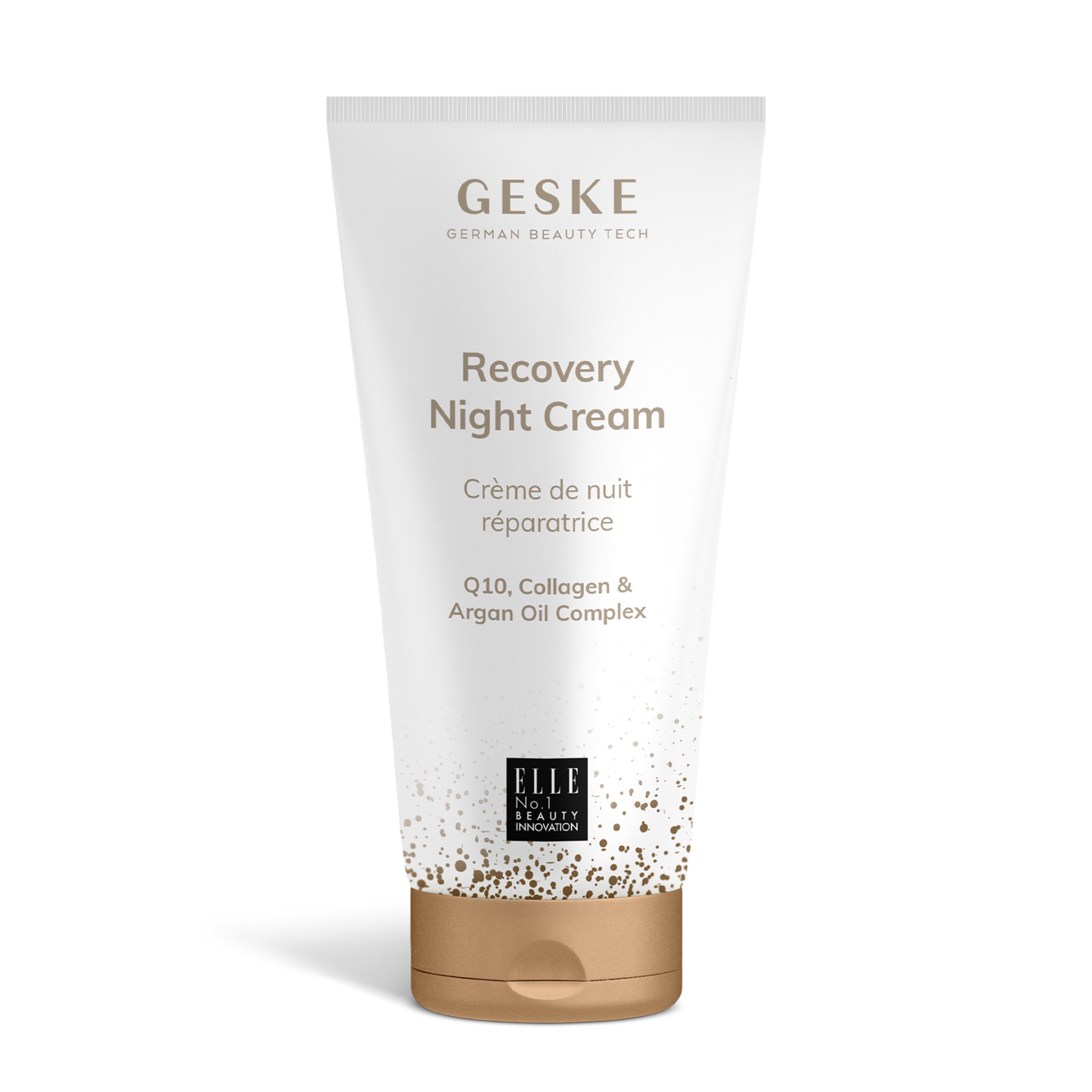 Damit sich die Haut in der Nacht optimal regenerieren kann, braucht sie besondere Pflege. Die Recovery Night Cream mit Collagen, Arganöl und Allantonin gibt der Haut alles, was sie braucht, um am nächsten Morgen frisch in den Tag zu starten. Die samtig-weiche Creme lässt sich leicht auftragen, zieht schnell ein und hinterlässt ein zartes, geschmeidiges Hautgefühl. Um herauszufinden, wie Sie das Produkt am besten in Ihre persönliche Pflegeroutine integrieren, laden Sie sich die GESKE Beauty App herunter. Dort können Sie eine Analyse Ihrer Haut durchführen und erhalten individuelle Pflegetipps.