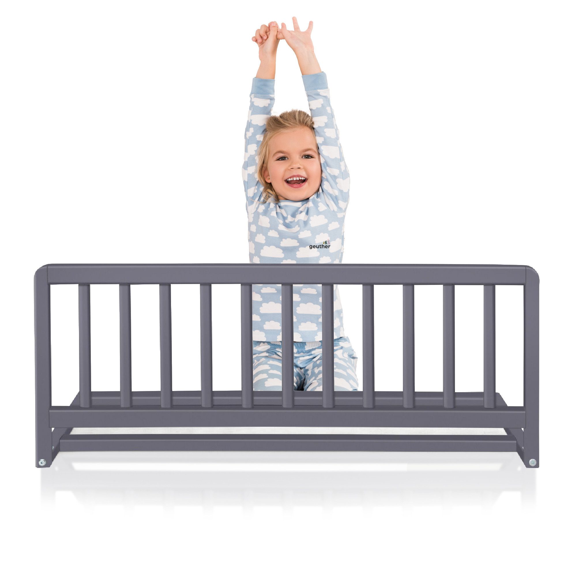Das Bettschutzgitter von Geuther schützt die Kleinen vor dem Herausfallen aus dem großen (Eltern-)Bett und lässt Eltern unbesorgt schlafen. Die stabilen Stäbe bieten maximale Sicherheit. Das Gitter wird einfach unter die Matratze geschoben und am Lattenrost befestigt - wird es nicht benötigt, kann es einfach und platzsparend zusammengeklappt werden. Aus massivem Buchenholz gefertigt ist es für Matratzen mit einer Длина von 140 bis 190 cm und einer Höhe von max. 18 cm geeignet.