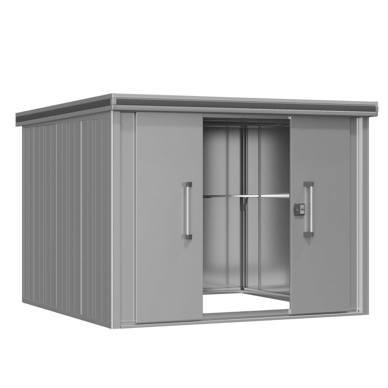 Noch nie war das Verstauen und Lagern Ihrer Gartengeräte so einfach, wie mit unseren qualitativ hochwertigen Metallgerätehäusern. Mit unserem Gartenhaus erhalten Sie ein besonders praktisches Stauraumsystem mit genügend Platz, um Ihre Werkzeuge, Gartengeräte oder Utensilien für Ihren Garten wettergeschützt und sicher aufzubewahren. Die solide verzinkte und pulverbeschichtete Blechkonstruktion unseres Metallschrankes schützt Ihre Gerätschaft auch bei stärkerem Niederschlag. Durch die sehr hohe Dachbelastbarkeit eignet sich diese Metalhütte besonders für Regionen mit starkem Schneefall.